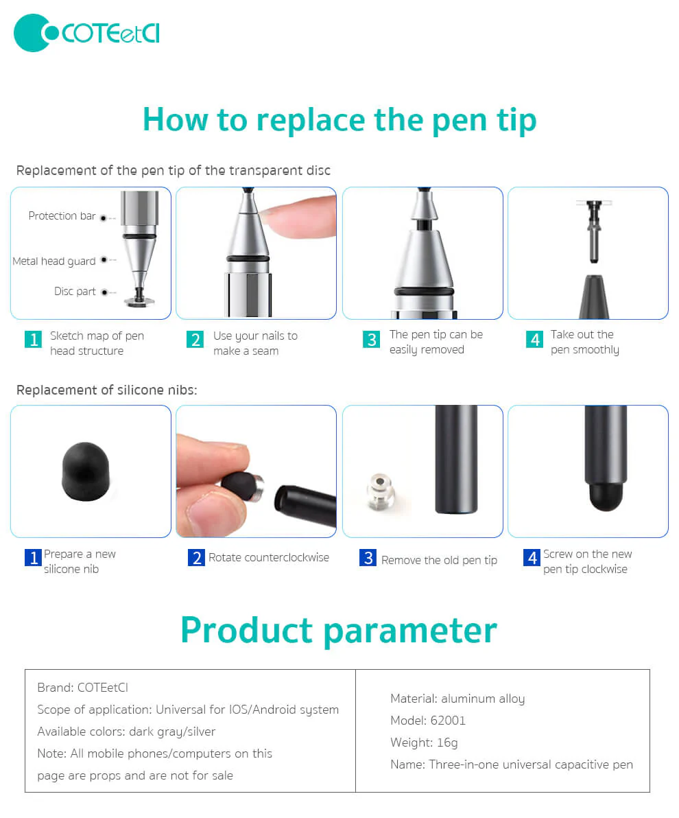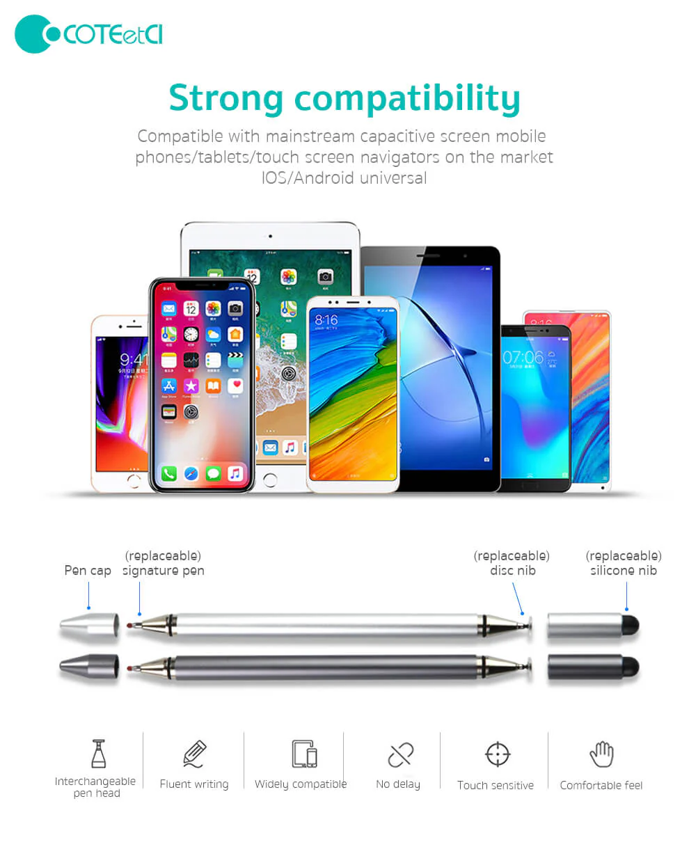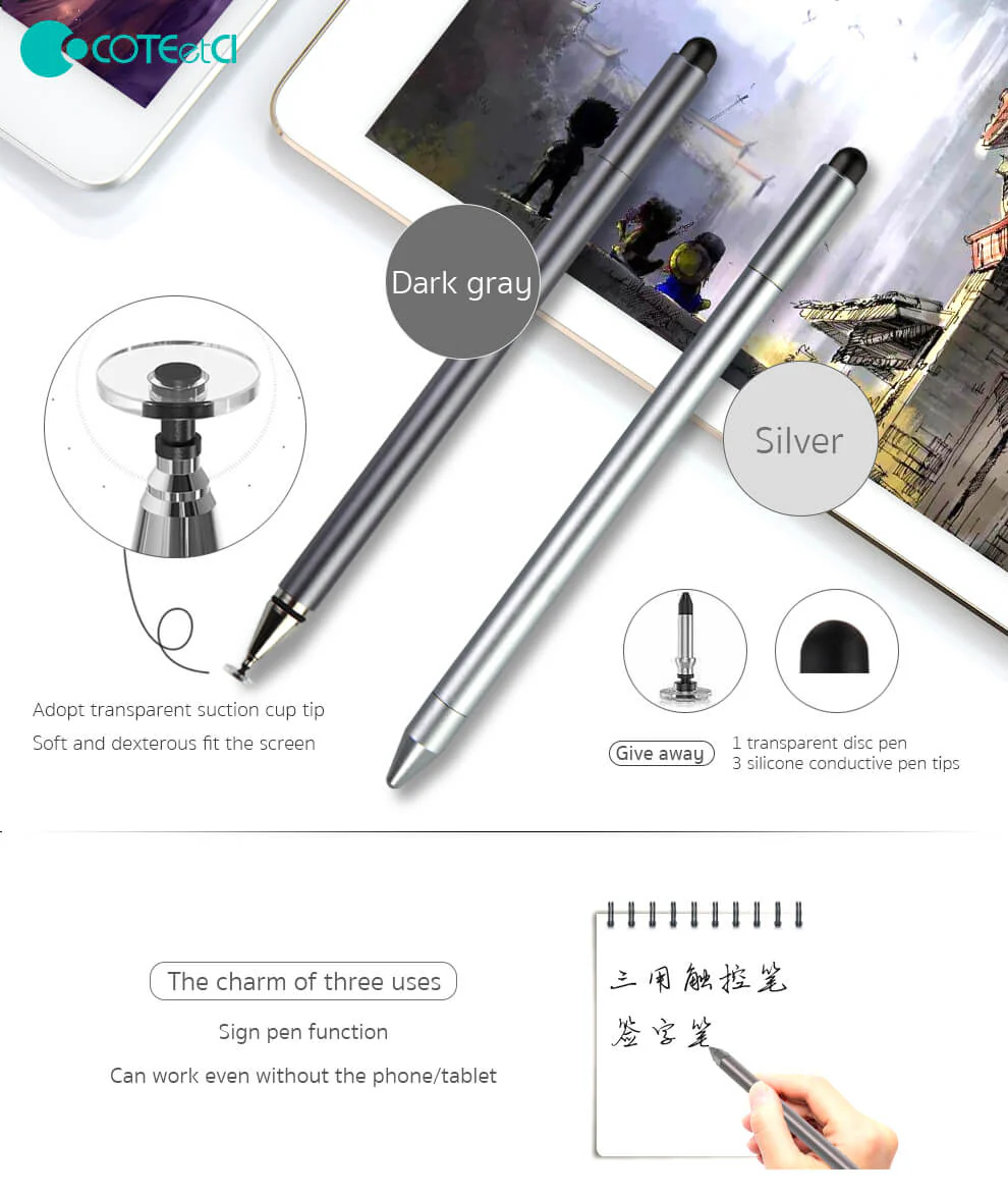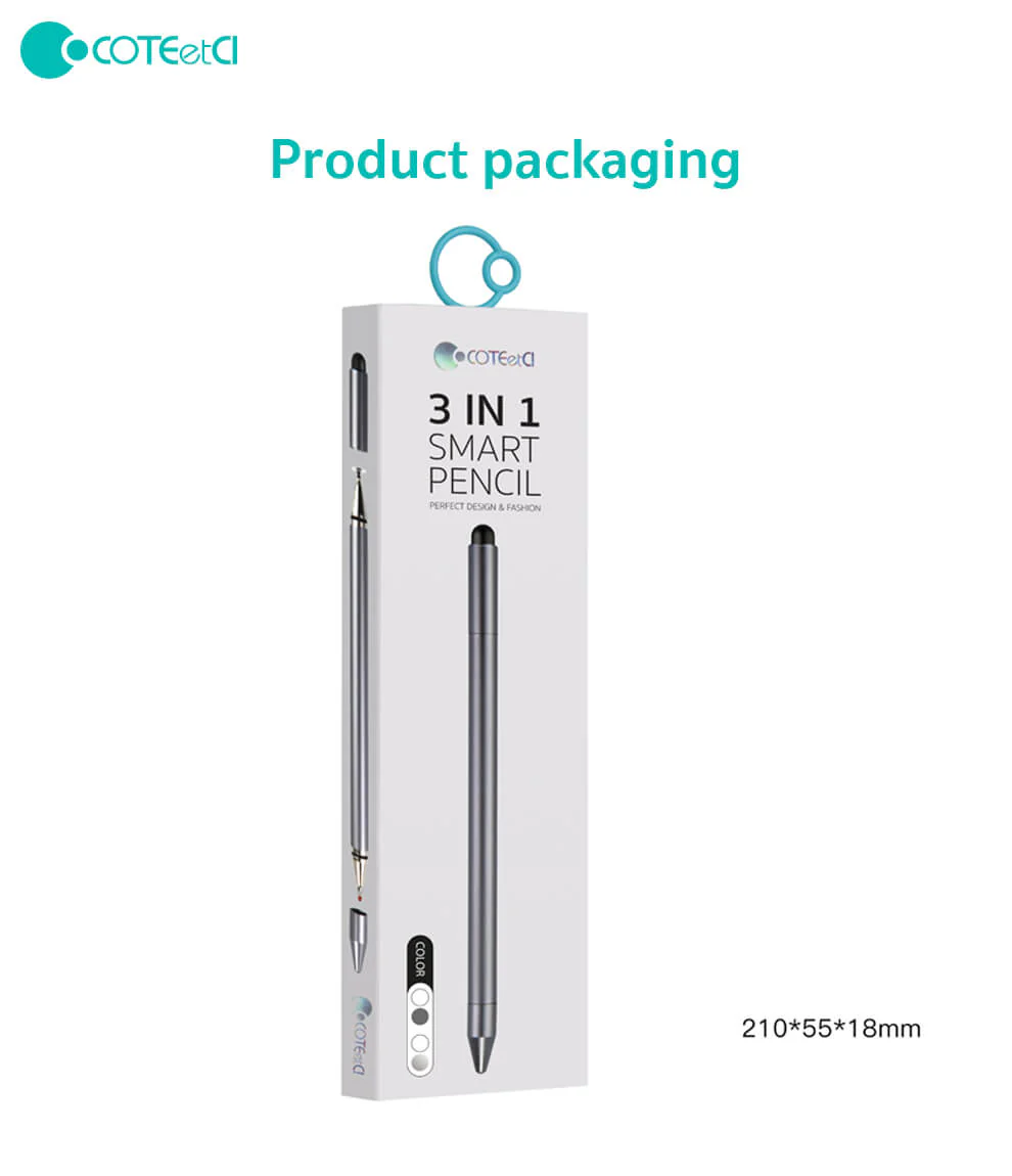 - 1 x Coteci 3-in-1 Capacitive Stylus Pen (with Disc Tip installed)