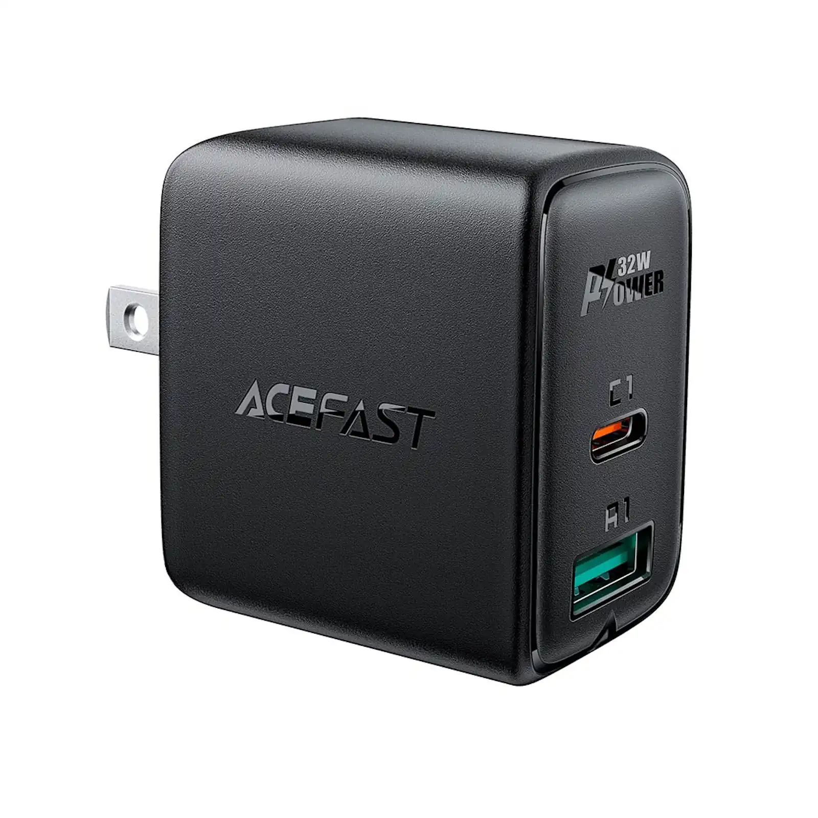 Acefast A7 PD 32W Wall Charger | USB-C 20W PD | Dual Port for iPhone, Samsung | US Plug (Black)