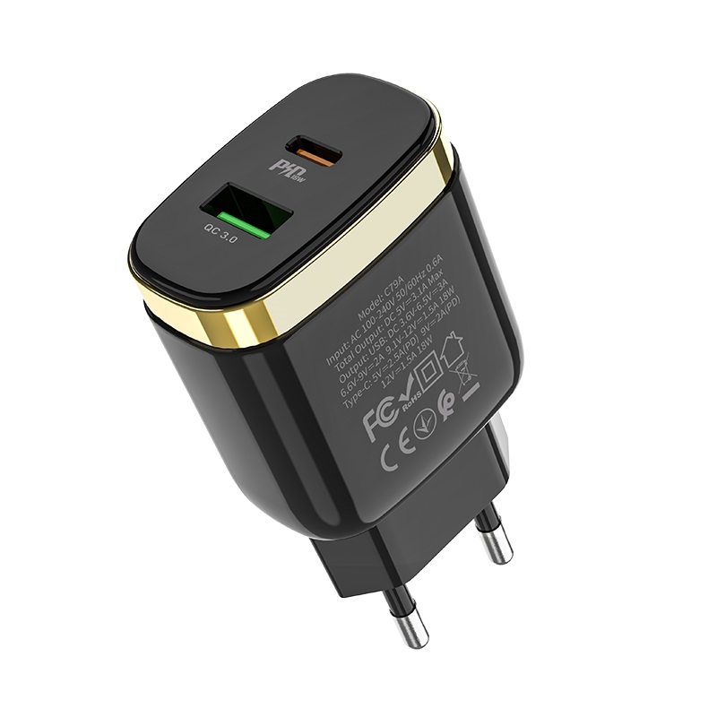 The HOCO C79A Zeus 18W PD+QC3.0 Wall Charger is a high-performance fast charger designed to power up your smartphones, tablets, and other USB-powered devices quickly and efficiently. Featuring dual USB-A and USB-C output, this charger supports multiple fast-charging protocols including Power Delivery (PD3.0), Quick Charge (QC3.0/QC2.0), Huawei FCP, and Samsung AFC.