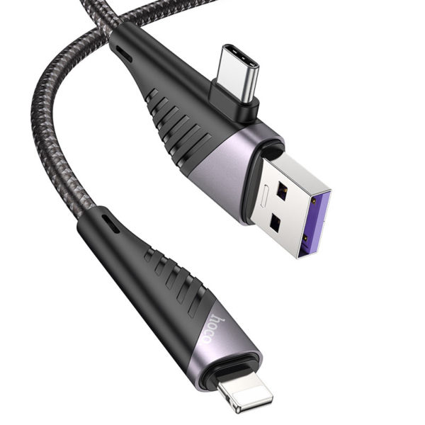 U95 2-in-1 Freeway PD USB / Type-C to Lightning charging data cable, 1.2m, nylon braided, current up to 2.4A