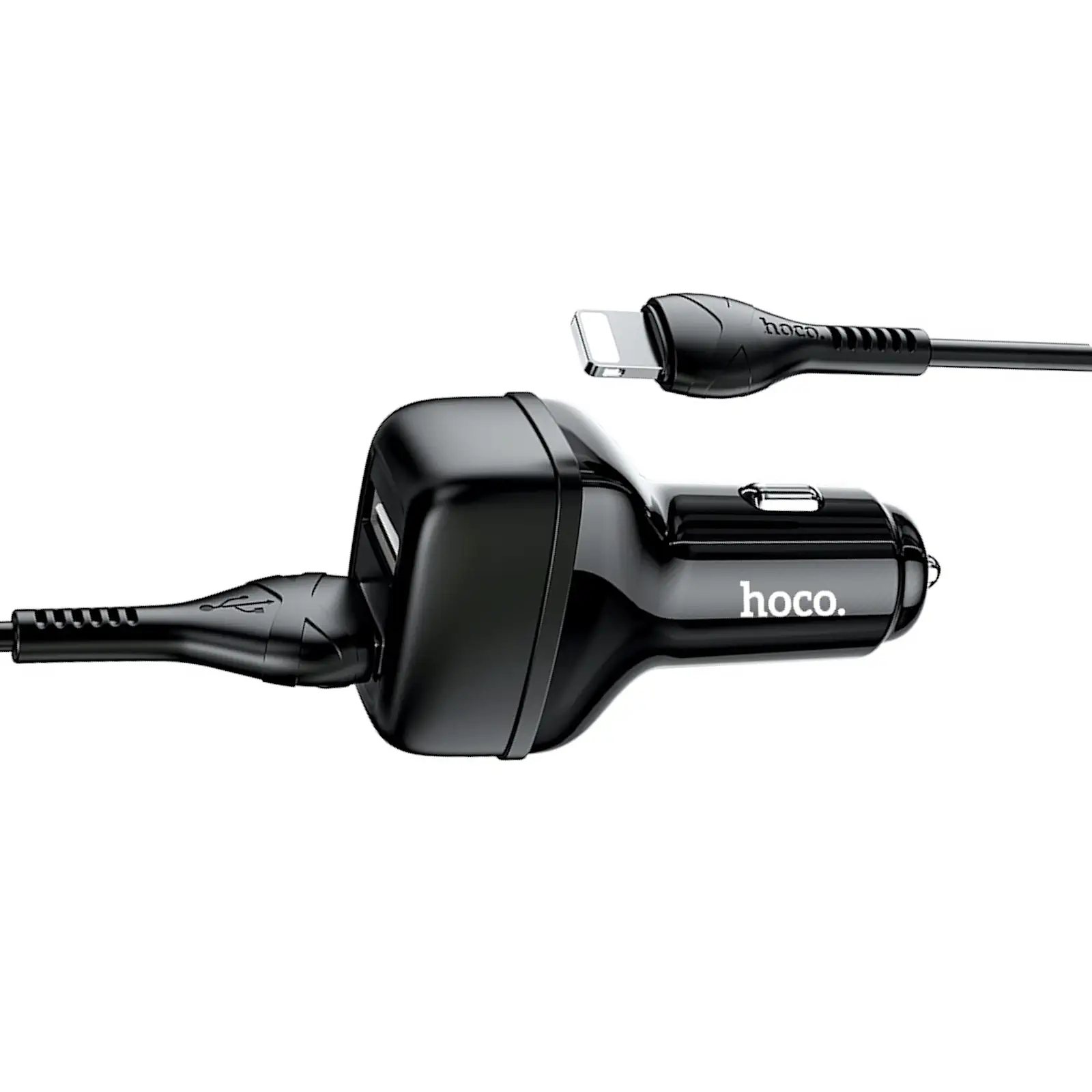 HOCO Z36 Leader Car Charger Dual Port Set with Lightning Cable, 5V/2.4A Output, ABS + PC Flame Retardant Material, 12/24V Input, Compact Design for Efficient Charging