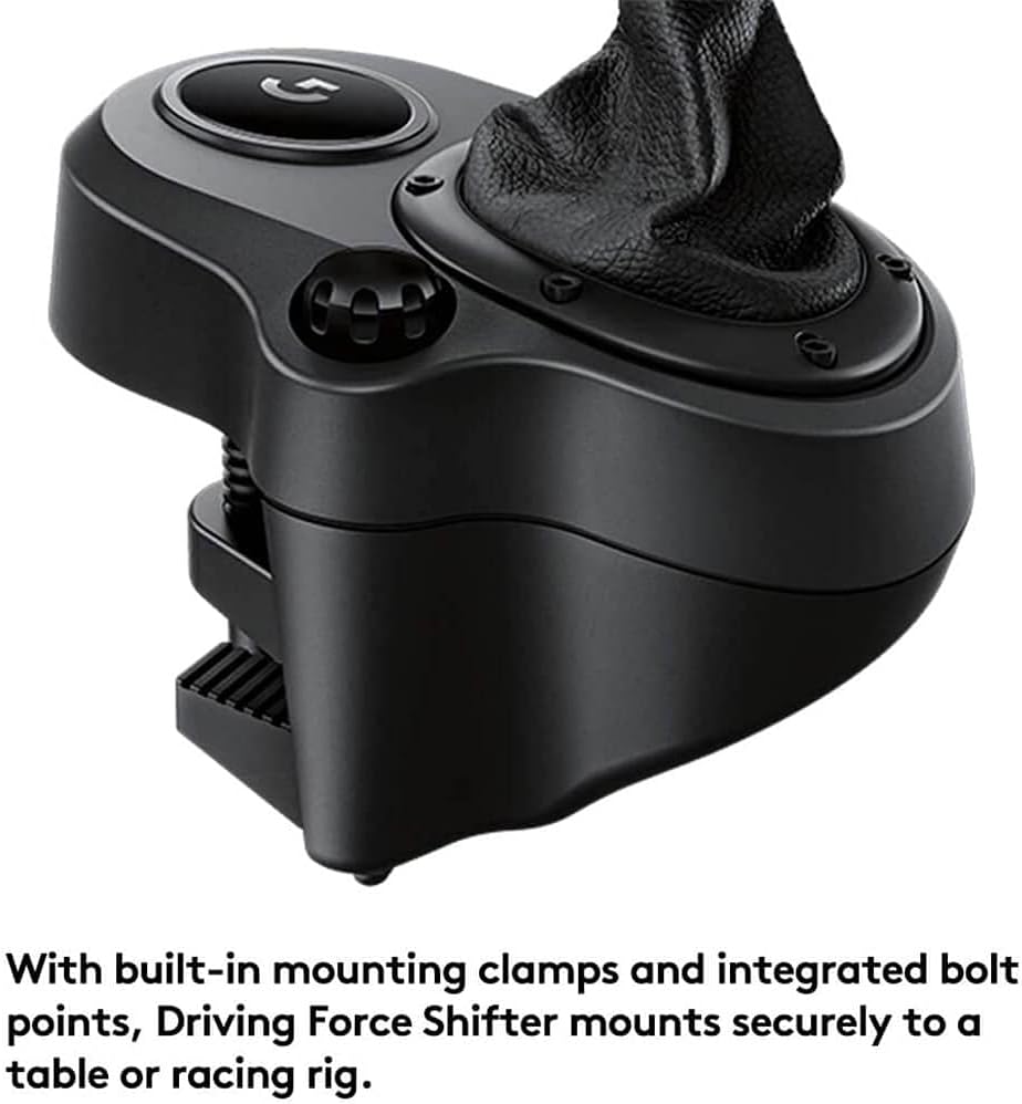 Complete your racing simulator with the Logitech Driving Force Shifter, the official add-on for the G29 and G920 racing wheels. Experience the thrill of manual transmission with an authentic 6-speed H-pattern gearbox that delivers solid, satisfying clicks into each gear. A simple push-down mechanism engages reverse, mirroring the operation of real performance vehicles. Crafted for endurance and comfort, the shifter features a hand-stitched leather knob and a robust solid steel internal shaft that withstands aggressive shifting. The secure mounting system uses durable clamps to attach firmly to your desk or racing rig, ensuring stability during the most demanding races. With simple plug-and-play connectivity to your G29 or G920 wheel base, this shifter instantly elevates your immersion in racing titles like Gran Turismo, Forza, and Assetto Corsa.