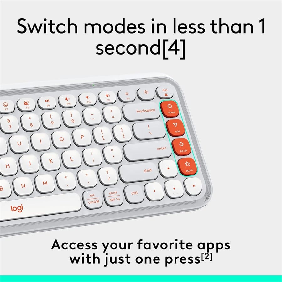 Express your style and boost your productivity with the Logitech POP Icon Keys Wireless Keyboard. Designed for those who dare to be different, this keyboard features a vibrant, transparent frame made from 37-70% recycled plastic (depending on color), adding a pop of personality to your workspace. The customizable Action Keys allow you to program shortcuts for your favorite apps, AI tools, social media, or productivity suites with Logi Options+ software (Windows/macOS). Seamlessly switch between three Bluetooth-connected devices—like your laptop, tablet, and phone—with the press of a button. The low-profile, contoured keys provide a comfortable and quiet typing experience, while the 3-year battery life ensures uninterrupted use. Perfect for work, creativity, or play, the POP Icon Keys combines sustainability, functionality, and style.