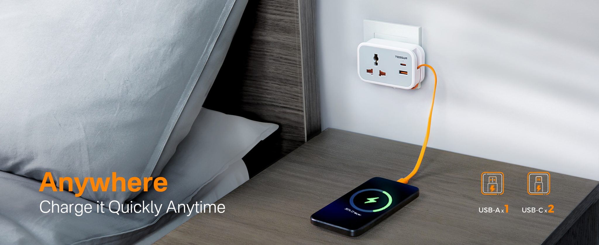 The TESSAN TS-TA01ALDE Wall Outlet seamlessly integrates AC power and high-speed USB charging into a single unit. Whether you’re at home, in a hotel, or working remotely, this outlet eliminates the need for bulky adapters and keeps your devices powered efficiently.