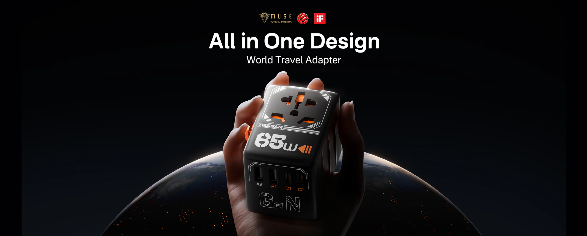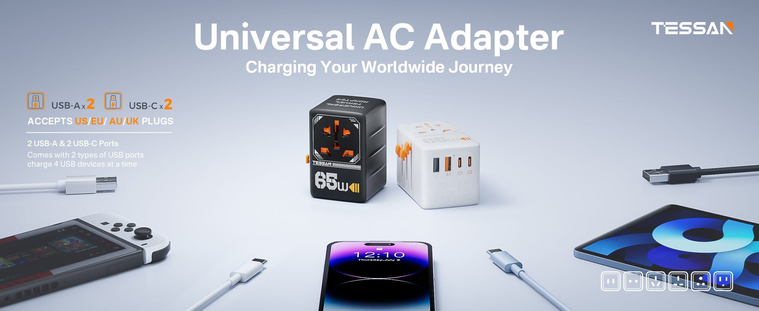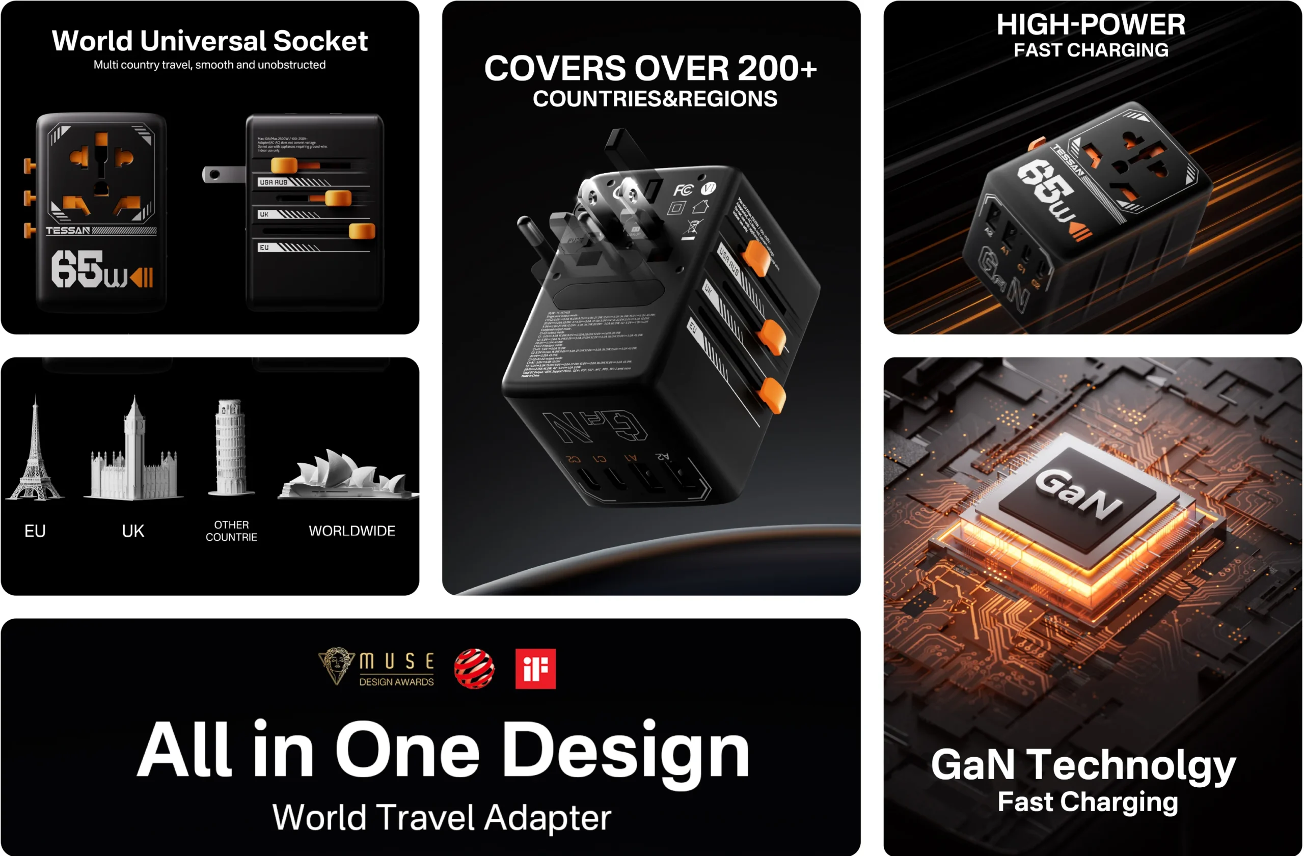 The TESSAN TS-WTA03 combines 65W GaN fast charging with universal plug compatibility, making it the perfect companion for international trips, cruises, or business travel.