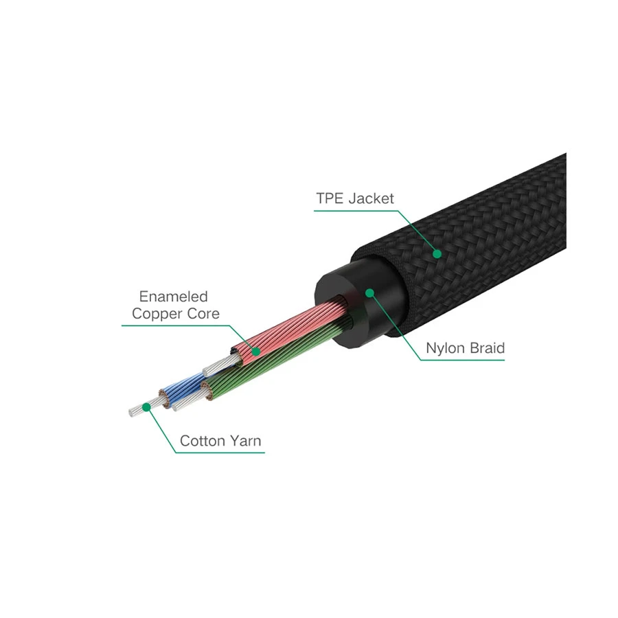 The durable braided design not only resists tangles but also adds a touch of style with its vibrant blue finish. Compatible with a wide range of devices such as smartphones, headphones, car stereos, speakers, and tablets, this versatile cable is your perfect audio companion. Whether you’re enjoying music, making hands-free calls, or syncing audio to your favorite devices, the UGREEN AV112 cable offers consistent performance and reliability.