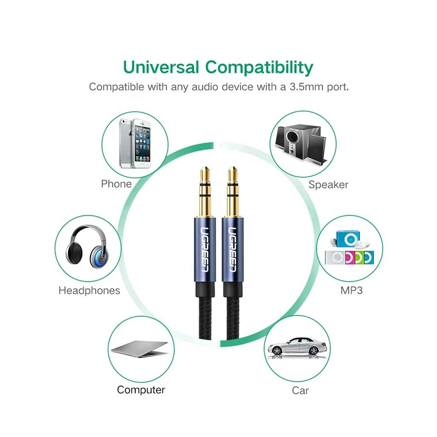 Compact and lightweight, this cable is easy to carry, making it ideal for travel or everyday use. The metal casing adds durability, ensuring it withstands the rigors of daily wear and tear. Elevate your audio connectivity with the trusted quality of UGREEN’s 3.5mm Male to Male Audio Cable.