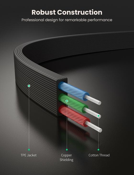 The UGREEN 10728 features a flat noodle cable that is not only slim and elegant but also tangle-free. Say goodbye to the frustration of untangling your cables. The flat design ensures that your cable remains neatly organized and ready for use, even after being stowed away in your bag or pocket.