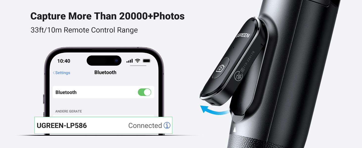 - Model: UGREEN 15062 Tripod Stand with Bluetooth Remote