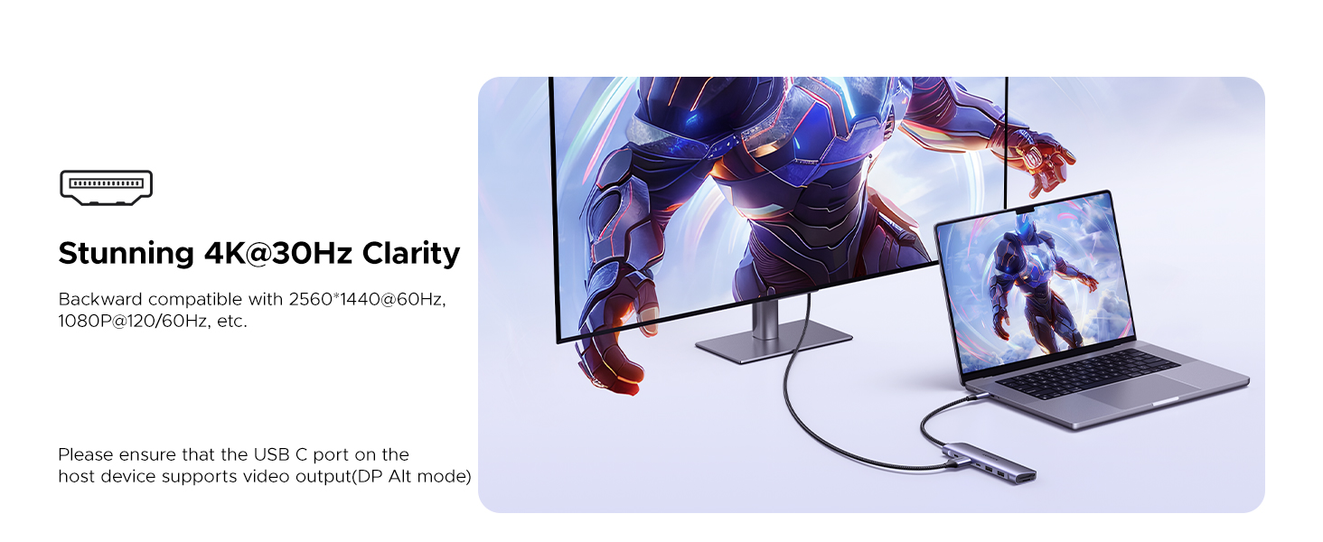 ✅ 4K HDMI for Crisp Displays – Connect to monitors/TVs at 4K@30Hz (HDCP 1.4).