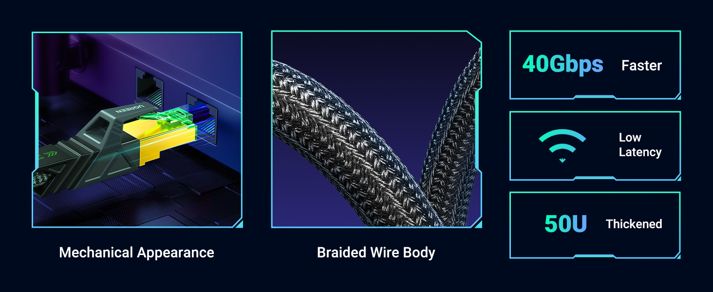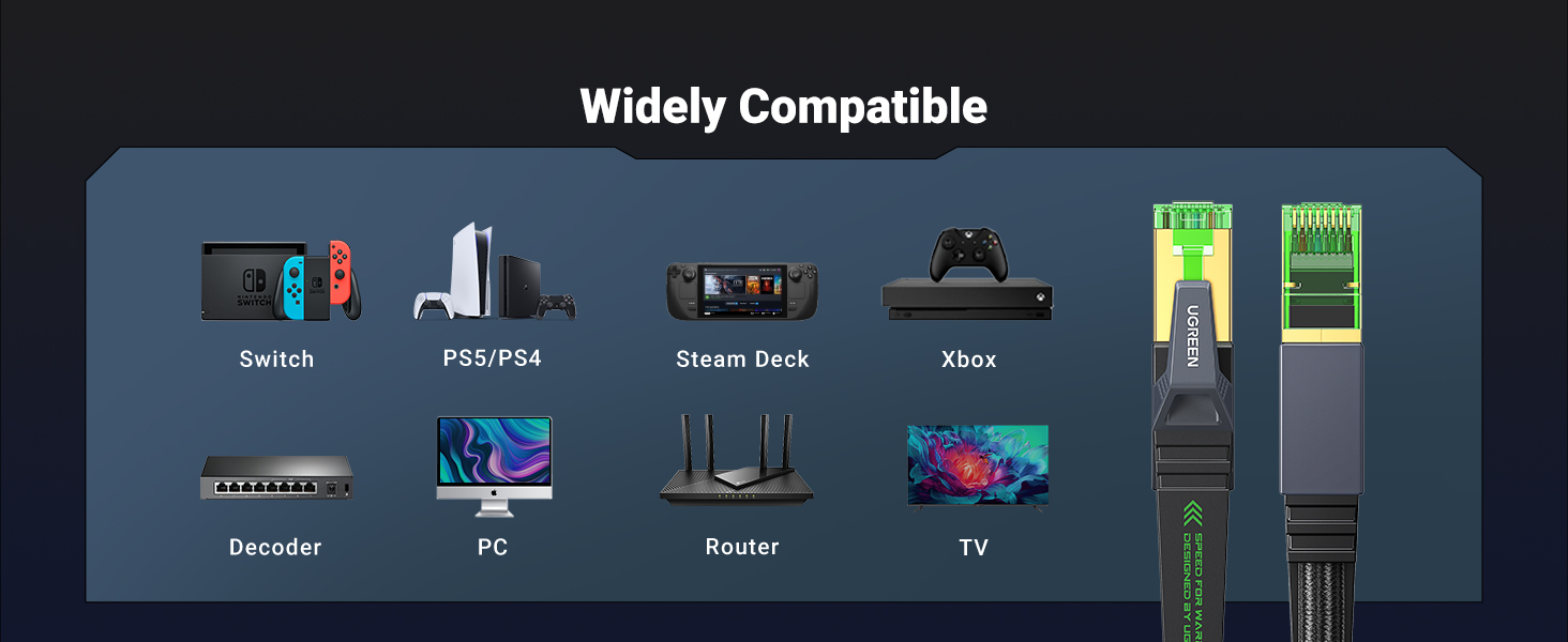 - Professional Gaming Ethernet Cable: UGREEN Cat 8 game ethernet cable supports bandwidth up to 2000MHz and 40Gbps data transmission speed, Ultra-high speed and mechanical appearance bring immersive gaming experience.