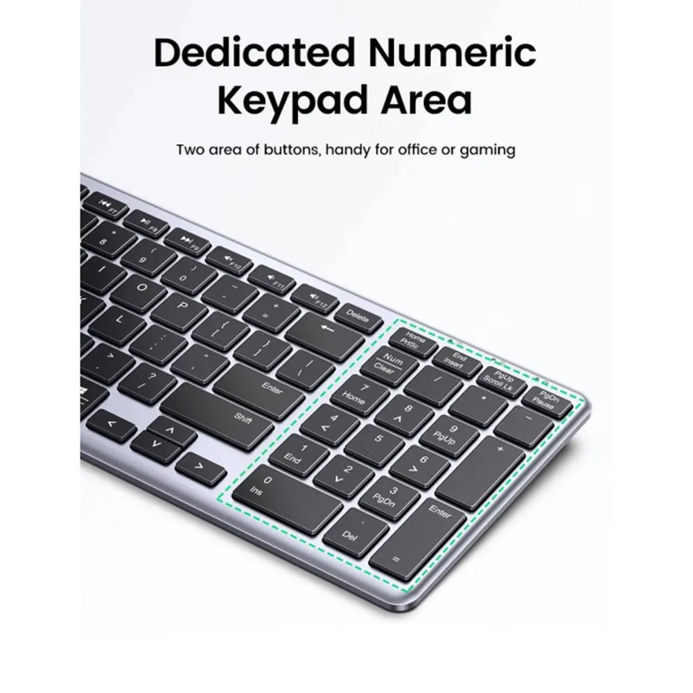 UGREEN 15258 Ultra Slim Wireless Keyboard, Bluetooth 5.0 & 2.4G, Multi-Device Connectivity, MacBook-Like Typing, Ergonomic Tilt, Compatible with iOS, Android, Windows, macOS