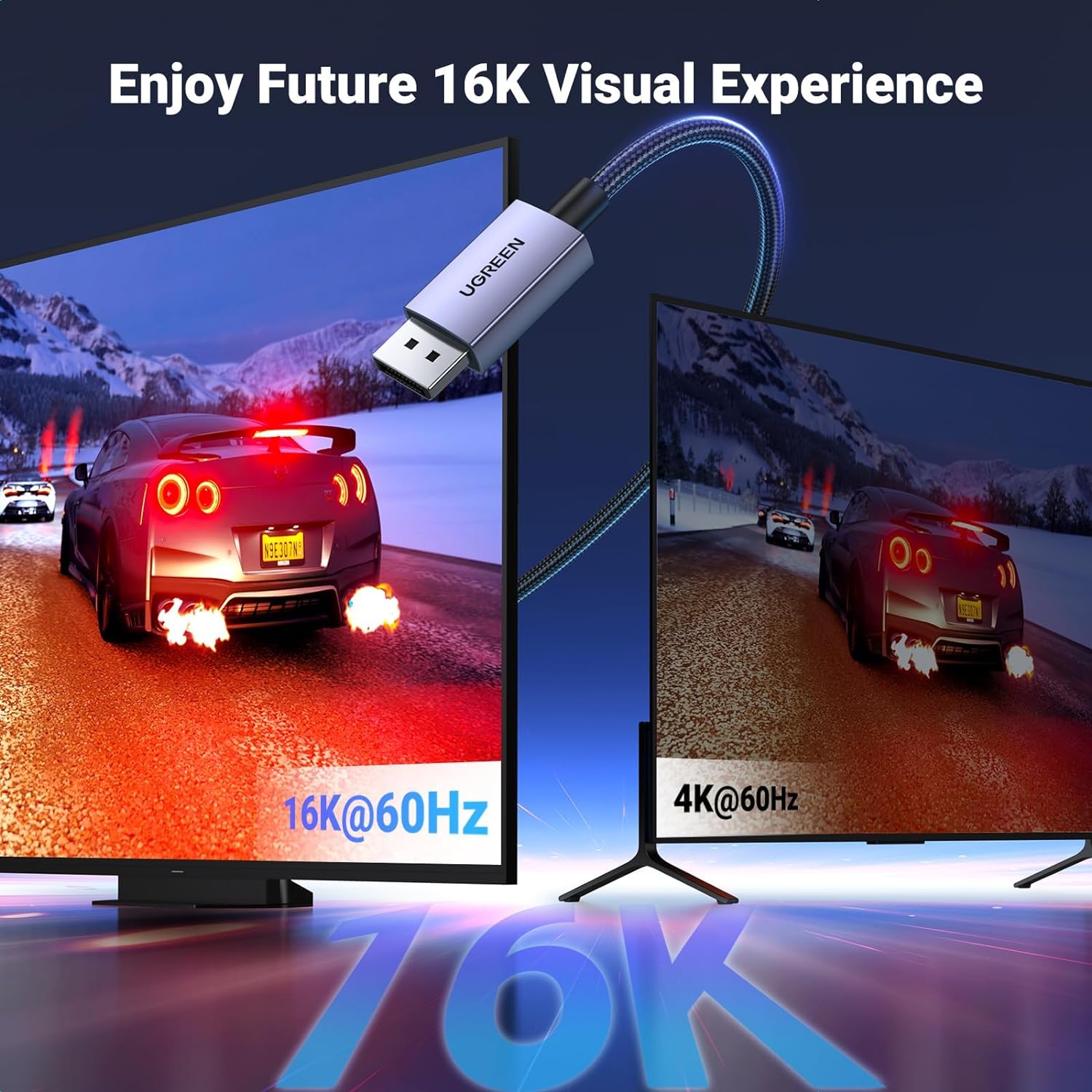 UGREEN 15384 16K DisplayPort Cable 2.1 (VESA Certified) FreeSync G-Sync Video Card Monitor 2 Meter