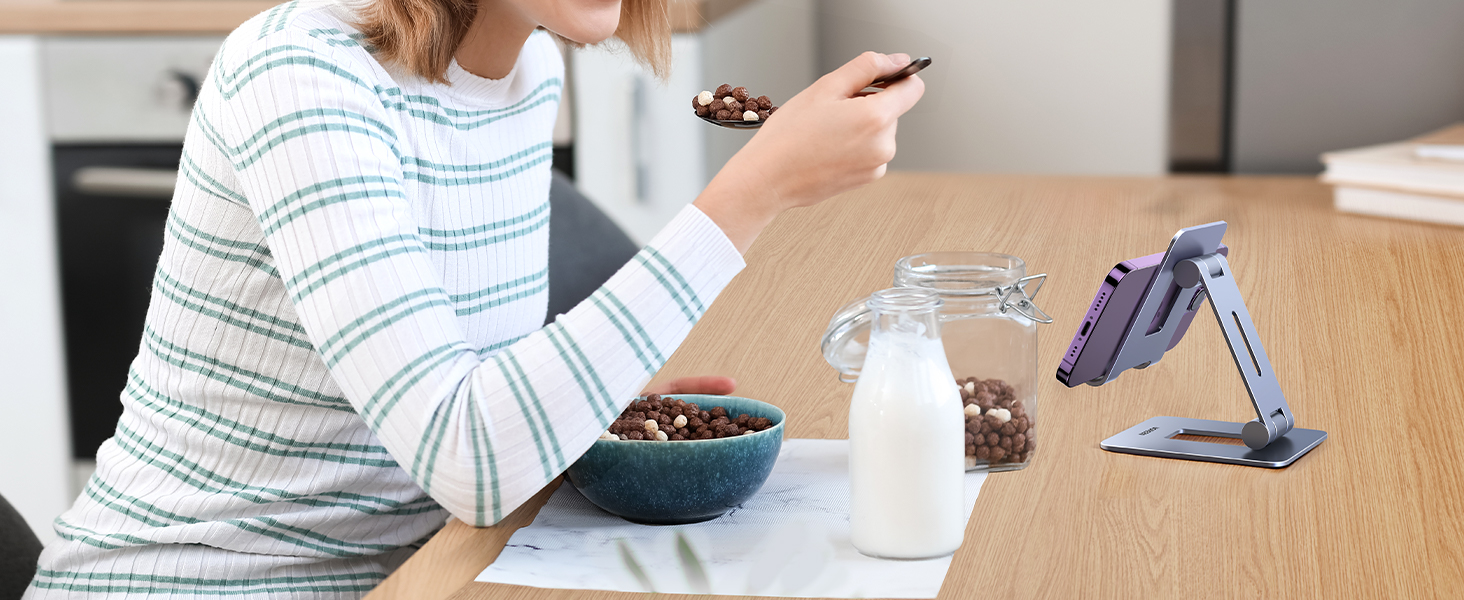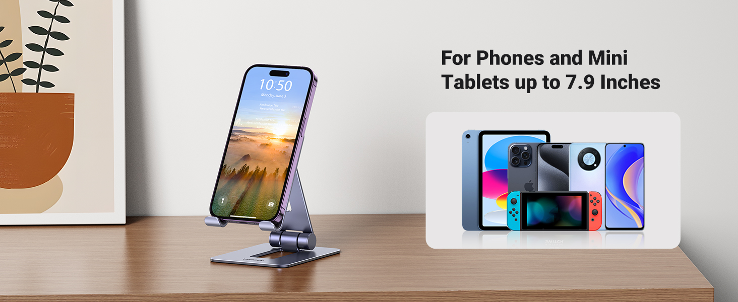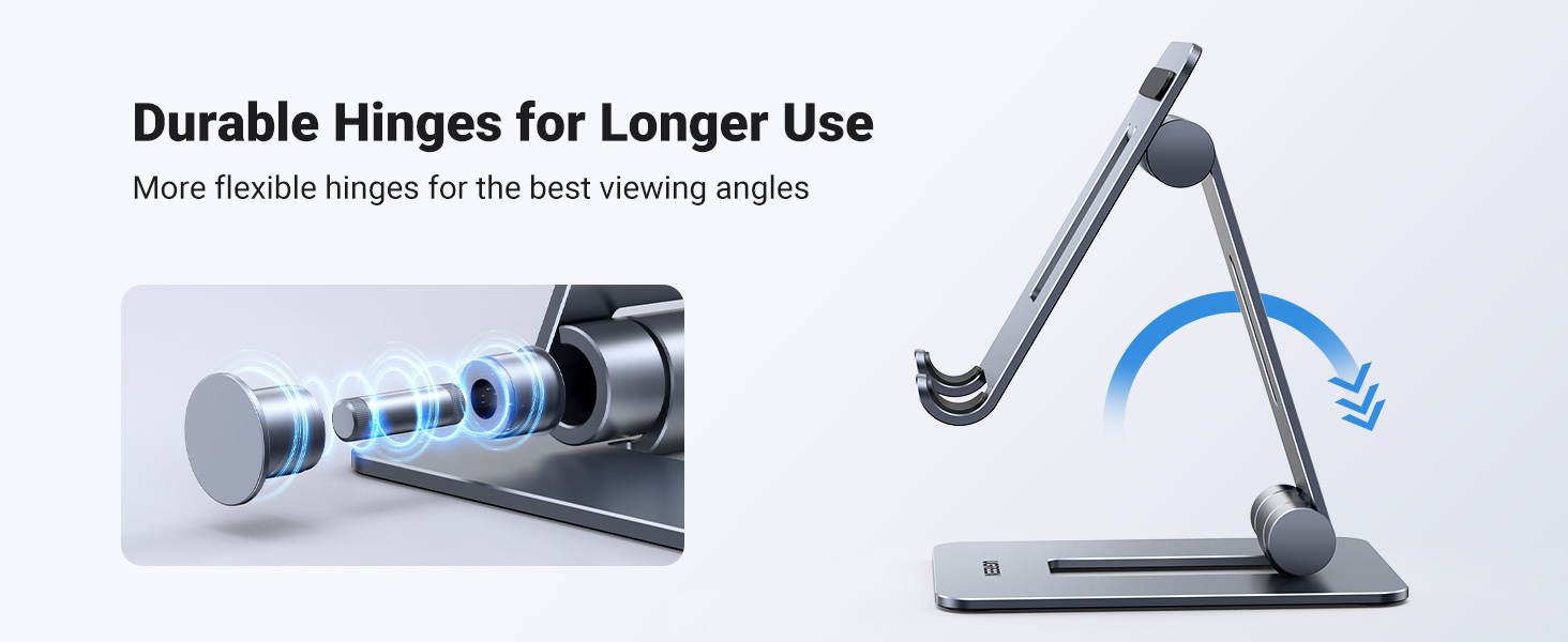 Engineered with premium aluminum alloy, it provides a rock-solid foundation for your valuable devices, from the largest smartphones to small tablets like the iPad Mini. The robust construction ensures it won’t wobble or tip over, while the high-quality bearing hinge allows you to smoothly adjust the viewing angle to your exact preference—perfect for hands-free video calls on Zoom, watching movies, or following a tutorial while cooking.