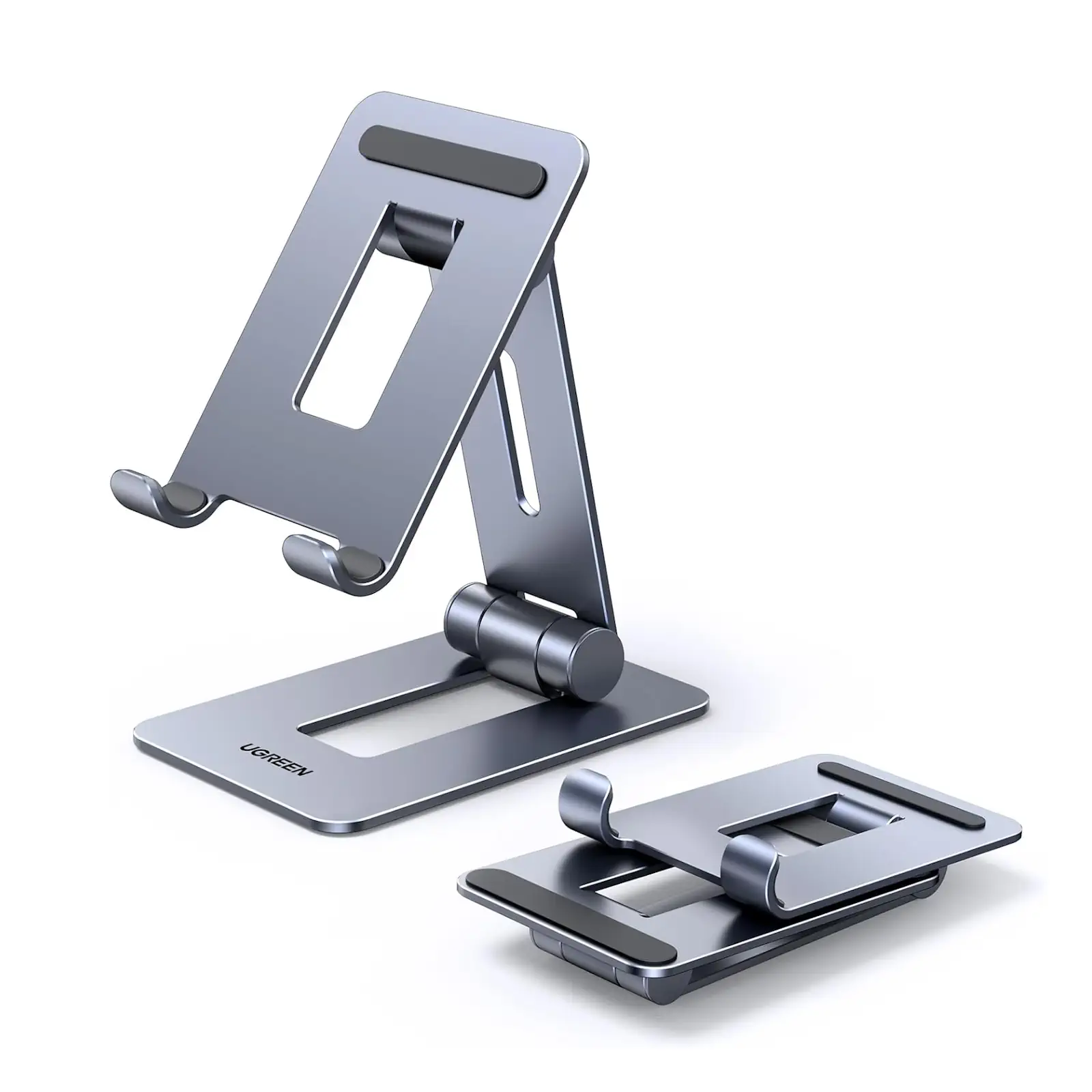 UGREEN 15608 Aluminum Phone Stand Holder, Adjustable Foldable Desktop Dock for iPhone 17/16/15 Pro Max, Galaxy S25/S24 Ultra, iPad Mini, All 4-9.7″ Phones & Tablets