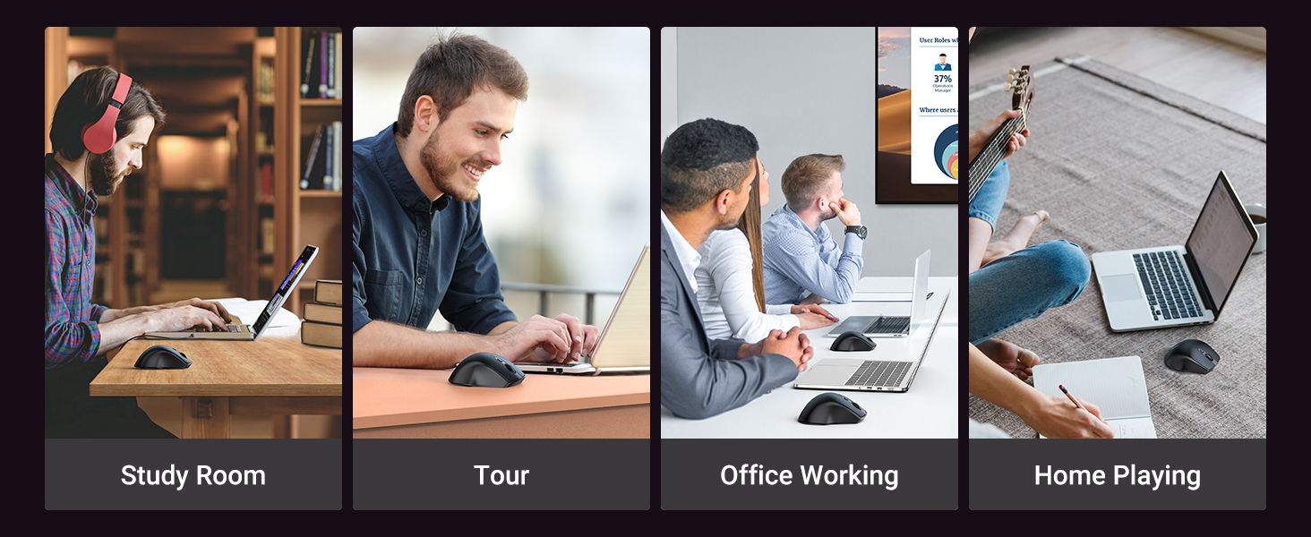 - Quieter Click: It is an ideal companion for electronic gadgets in the workplace, conference room, coffee shop, library, or home since our Bluetooth mouse for laptops is made with a quiet click that makes less noise, allowing you to use it without being concerned about bothering others