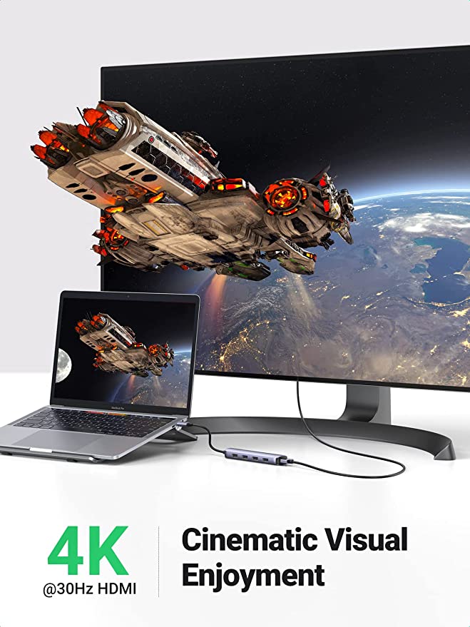 The HDMI port supports Ultra-High-Definition resolutions of up to 4K at 30Hz, ensuring stunning visuals without any lag, image tearing, or stuttering. Whether you’re extending your screen for work or mirroring content for a presentation or home entertainment, the UGREEN hub delivers clear and smooth performance. The hub also supports dual-mode audio and video synchronization, enhancing your viewing experience.