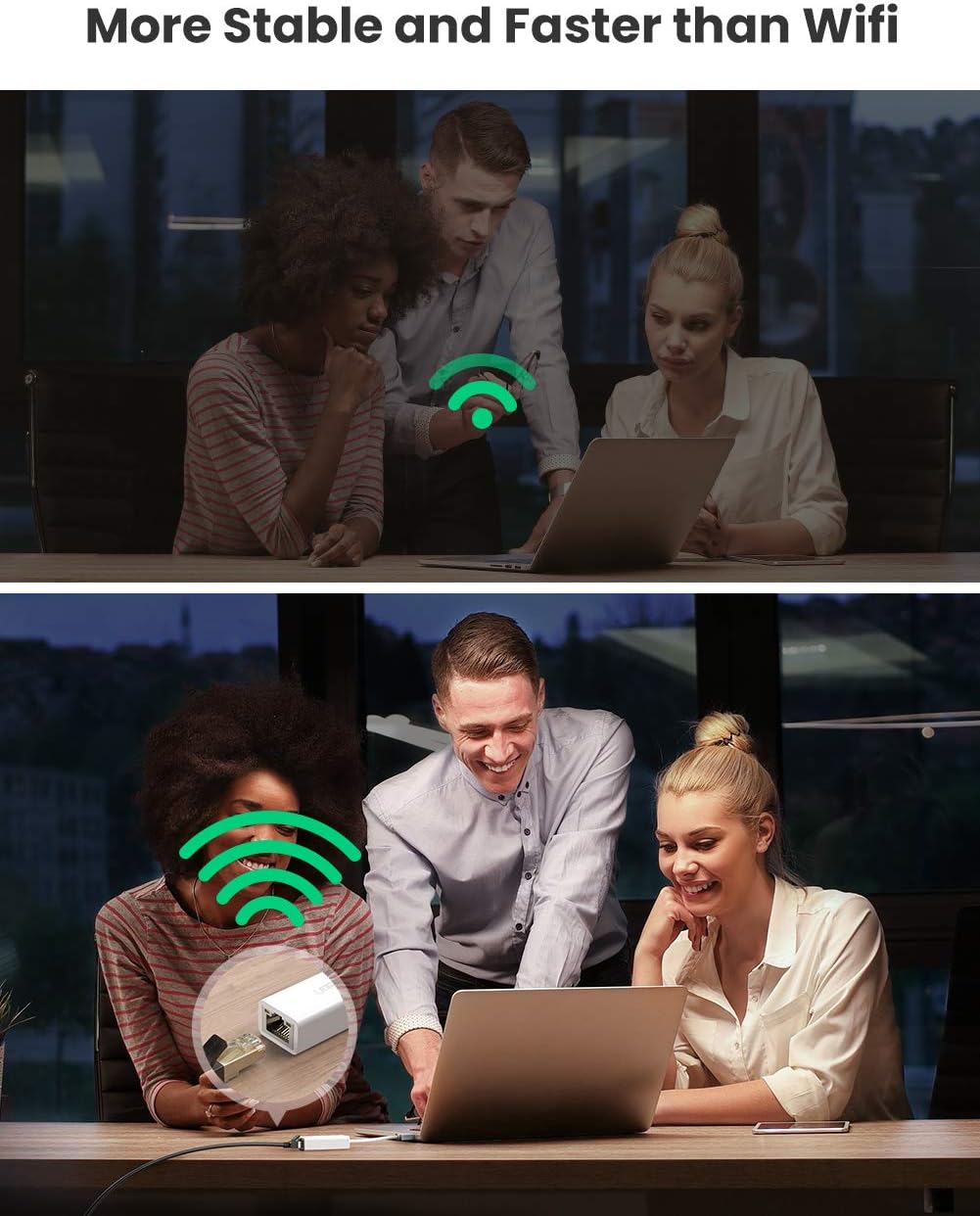 Upgrade your network connectivity with the UGREEN 20255 USB 3.0 to RJ45 Gigabit Ethernet Adapter. Designed for unmatched speed and reliability, this adapter adds a standard RJ45 port to your Ultrabook, notebook, or MacBook Air, ensuring seamless file transfers, HD video streaming, gaming, and video conferencing. With full 10/100/1000Mbps Ethernet performance over USB 3.0’s 5Gbps bus, it offers a faster and more dependable connection than Wi-Fi. Perfect for replacing a broken Ethernet port or safeguarding the LAN port of your expensive devices.