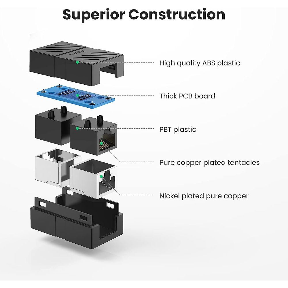 Whether you’re streaming your favorite movies, engaging in online gaming, or working from home, speed matters. The UGREEN RJ45 Coupler, with its female-to-female connector featuring pure copper-plated tentacles, ensures a steady and superior signal transmission. This results in high-speed data transmission, allowing you to maximize your 1-gigabit connection using Cat7 or Cat6 Ethernet cables.