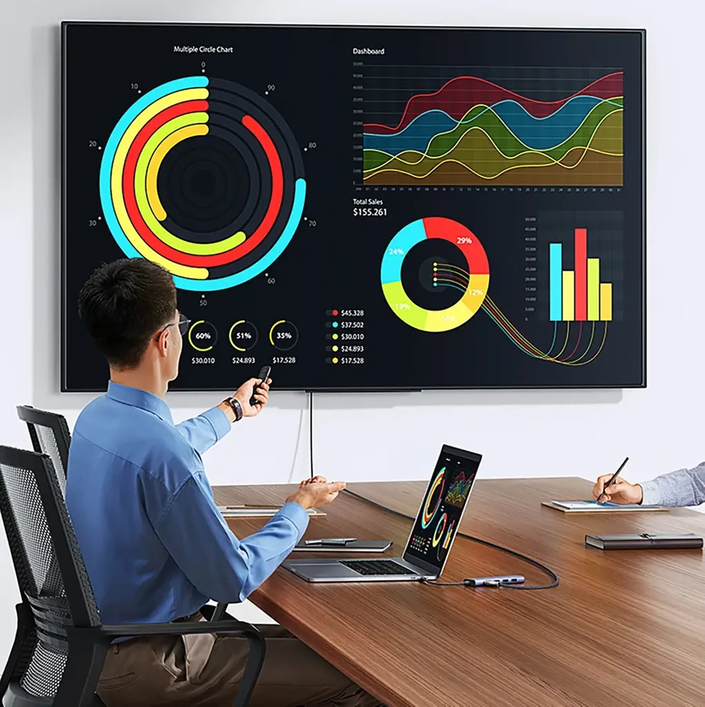 Equipped with six essential ports, the Ugreen CM511 allows you to maximize your device’s potential. The 4K@30Hz HDMI output enables you to extend or mirror your display to an external monitor, perfect for presentations, video editing, and entertainment. The three USB 3.0 ports deliver lightning-fast 5Gbps data transfer, ensuring smooth performance when connecting external hard drives, keyboards, mice, and other peripherals. Additionally, the SD and TF card readers provide effortless media access, making it an excellent choice for photographers, designers, and video editors who need fast and reliable file transfers.