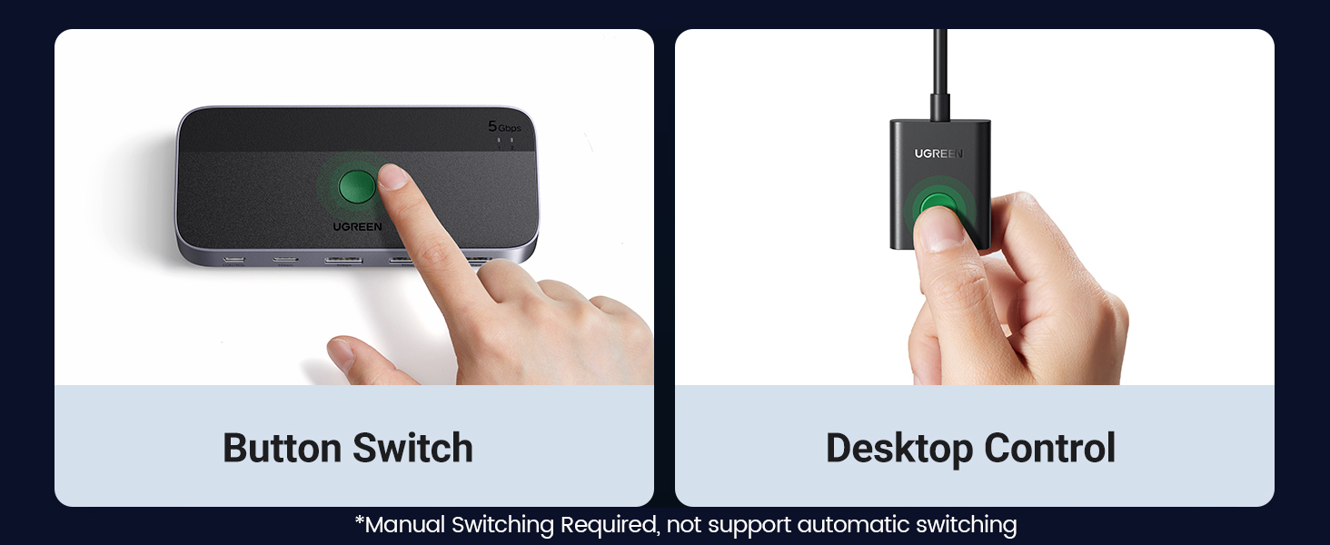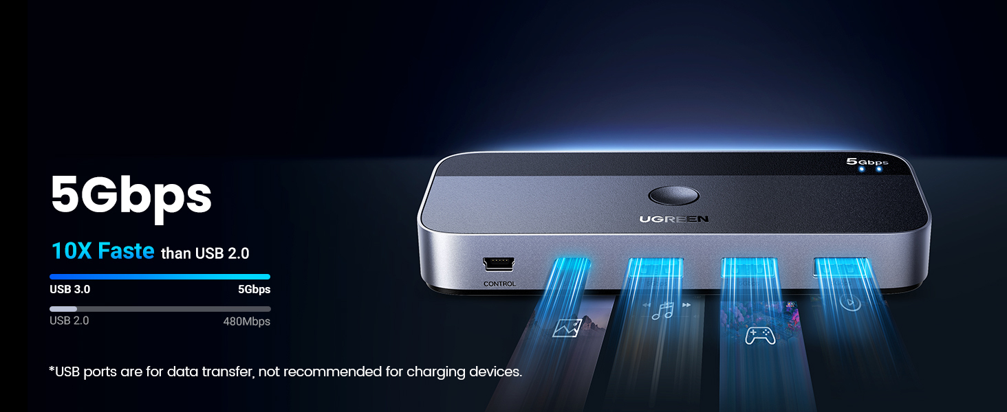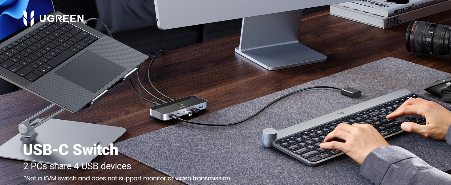 The UGREEN 25098 USB-C Switch lets you share peripherals between two computers—perfect for remote workers, streamers, or IT professionals who switch between work and personal laptops. With 5Gbps data speeds, remote control, and optional power input, it eliminates cable clutter while maintaining performance.