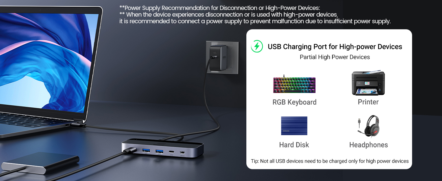✅ Stable Power for HDDs – USB-C power input prevents disconnections with power-hungry devices.