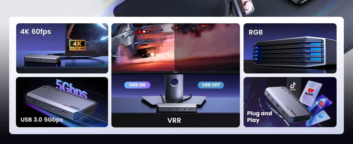 UGREEN 25173 4K@60Hz HDMI Capture Card – USB 3.0 Ultra HD Video Recorder with 1080P@240Hz, VRR, HDR for Streaming, Gaming (Compatible with PS5, Xbox, Switch, PC, Mac, iPad)