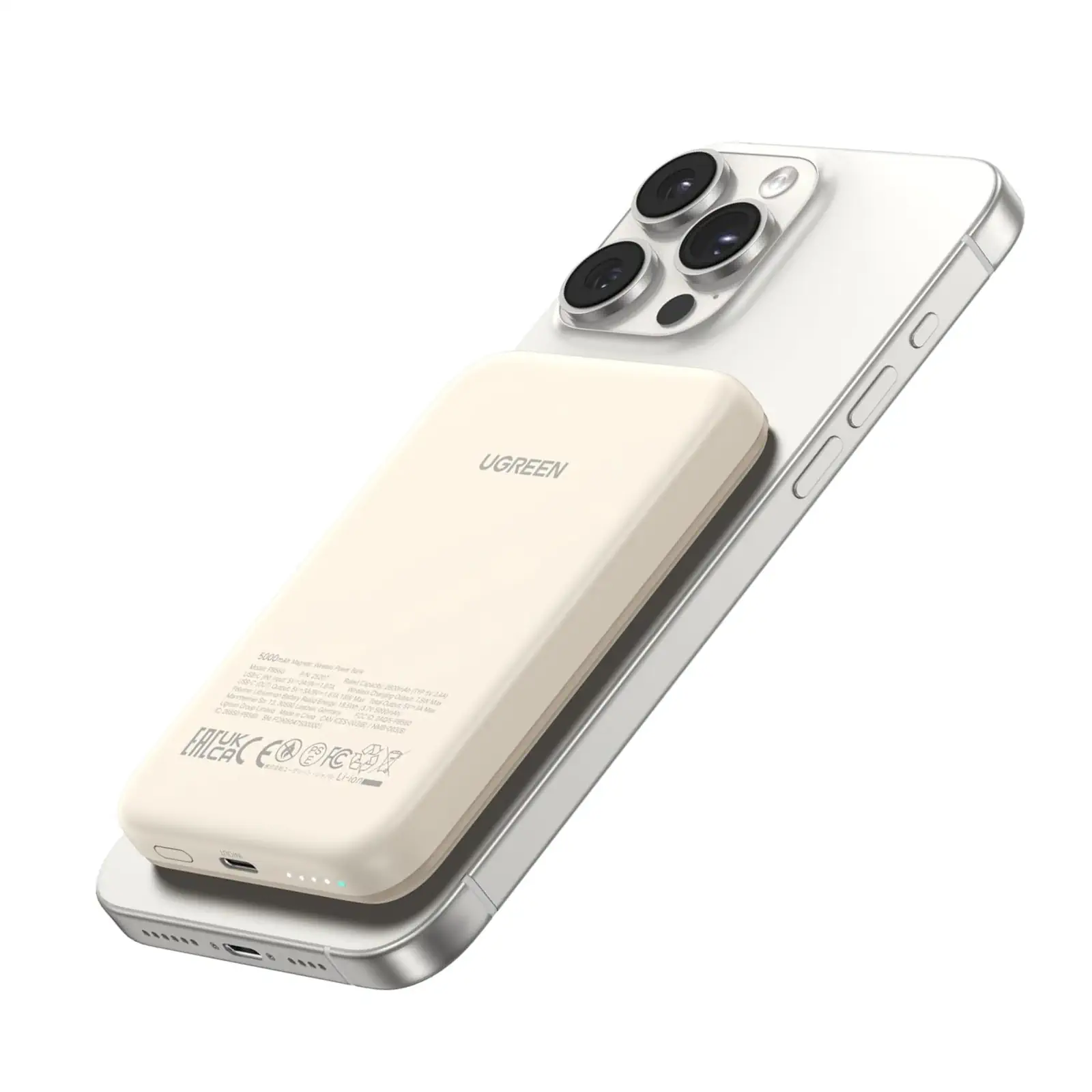 UGREEN 25207 Magnetic Power Bank, Slim 5,000mAh Wireless Portable Charger, PD Fast Charging Battery Pack with USB-C for Magsafe, iPhone 16/15/15 Plus/15 Pro/15 Pro Max, iPhone14/13/12 Series, White (Model PB560)