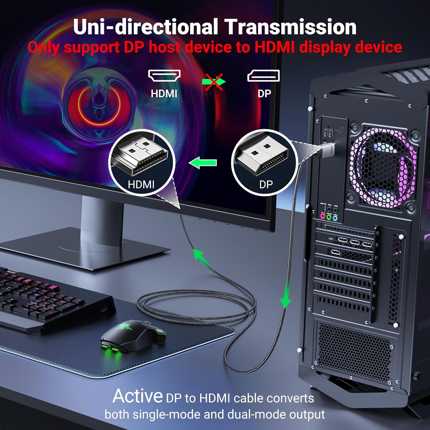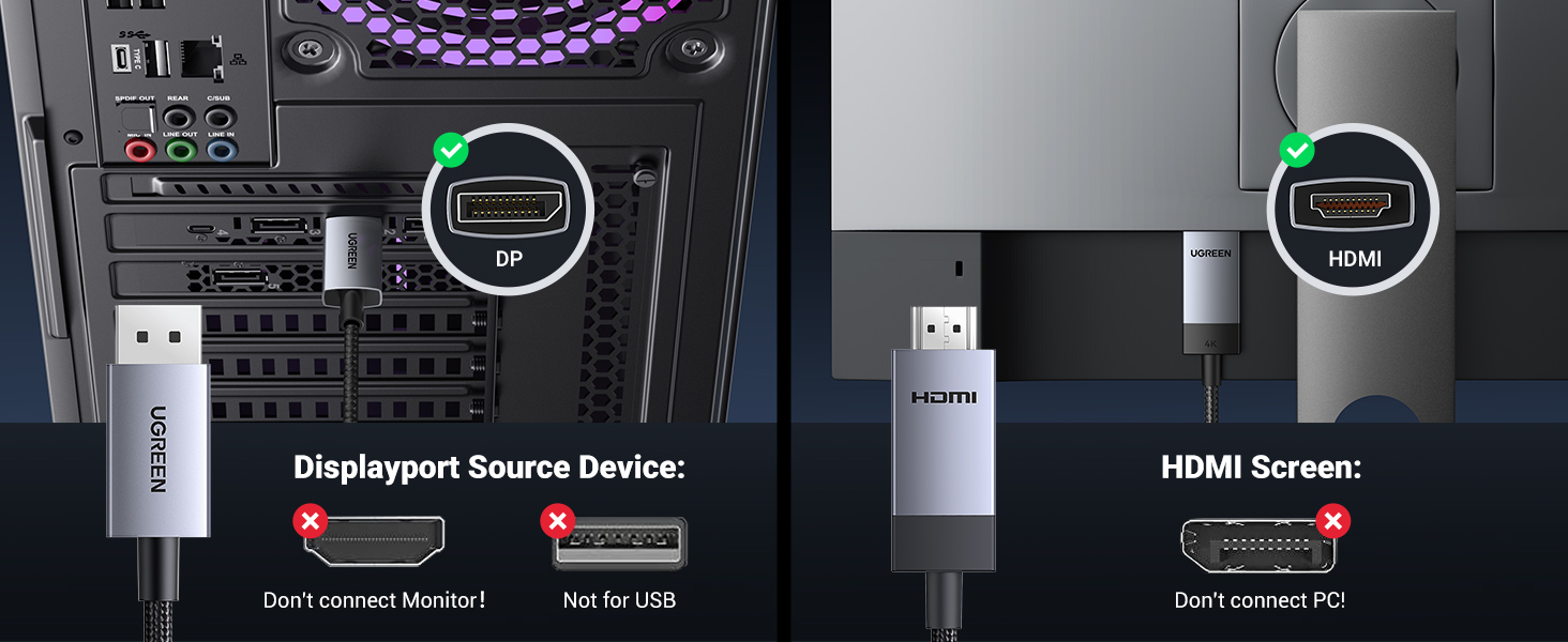 ✅ Active Signal Conversion: Onboard microprocessor ensures flawless DP→HDMI 4K translation