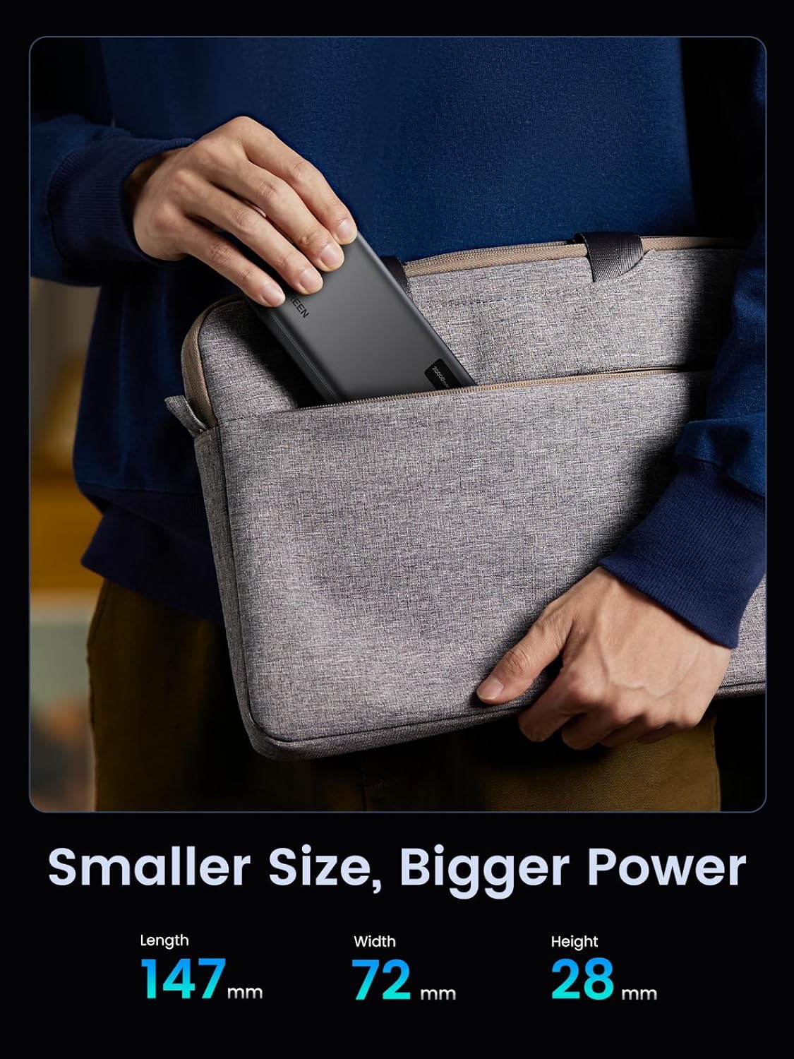 The UGREEN power bank convinced me across the board. It is compact, lightweight and yet powerful. My smartphone charges super fast and the capacity is easily enough for multiple charges. I find the USB-C fast charging function, which I often missed with other power banks, particularly practical. The design is simple but high-quality and fits perfectly in any pocket. Ideal for traveling or long days on the go when I need a reliable power source. Clear purchase recommendation!
