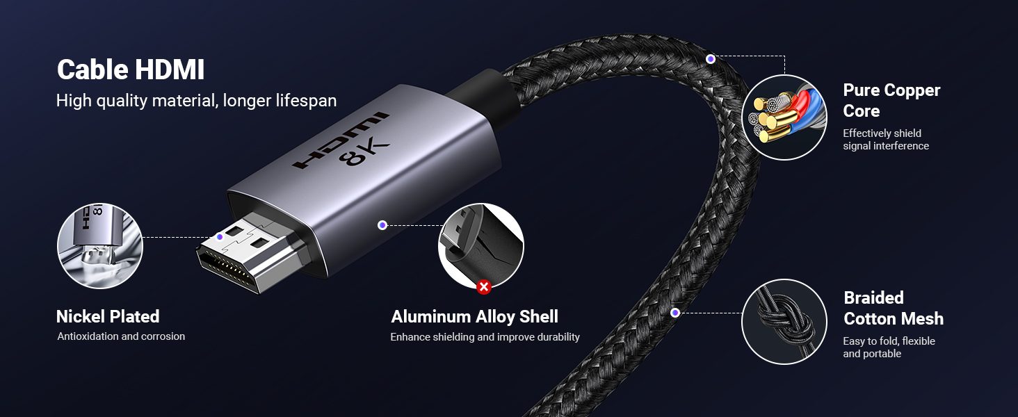 The Enhanced Audio Return Channel (eARC) simplifies your audio setup by sending pristine, object-based audio like Dolby Atmos from your smart TV’s apps directly to your compatible sound system. With Dynamic HDR, you’ll enjoy a wider range of colors, deeper contrasts, and more vivid details in every scene. This cable is the essential link for your gaming console, 4K Blu-ray player, and 8K TV. Its generous 32-foot length offers flexibility for complex home theater installations, while the robust braided design ensures reliability. Complete your premium setup with other UGREEN HDMI cables for all your devices and explore our audio-video collection for more ways to enhance your viewing experience.