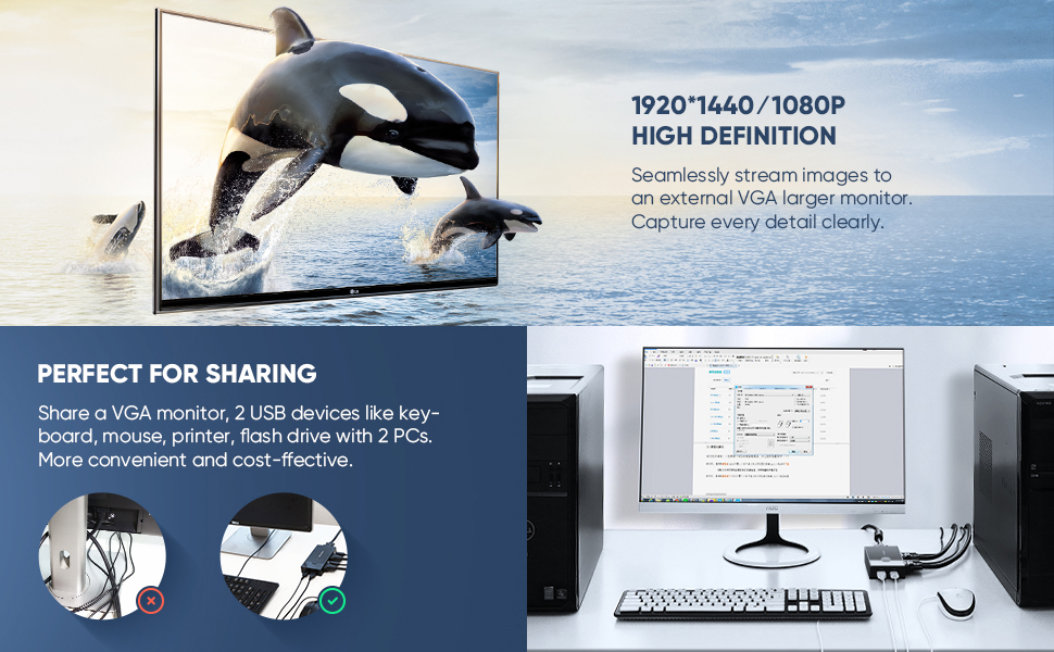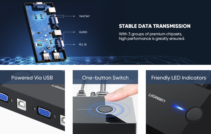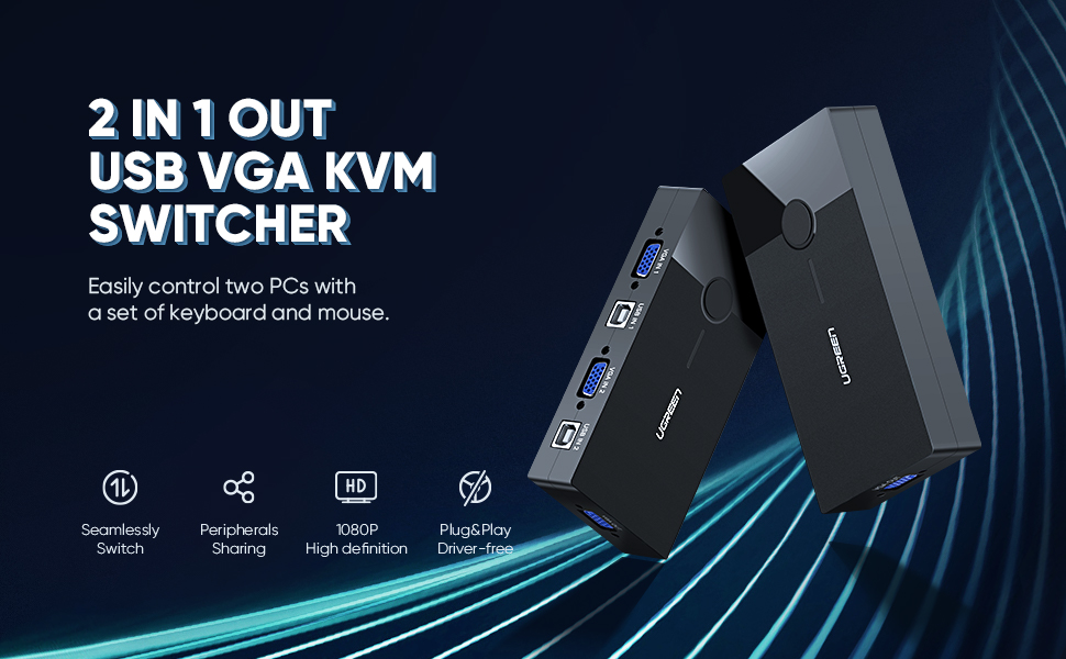 • 1 x Ugreen 2-Port USB VGA KVM Switch