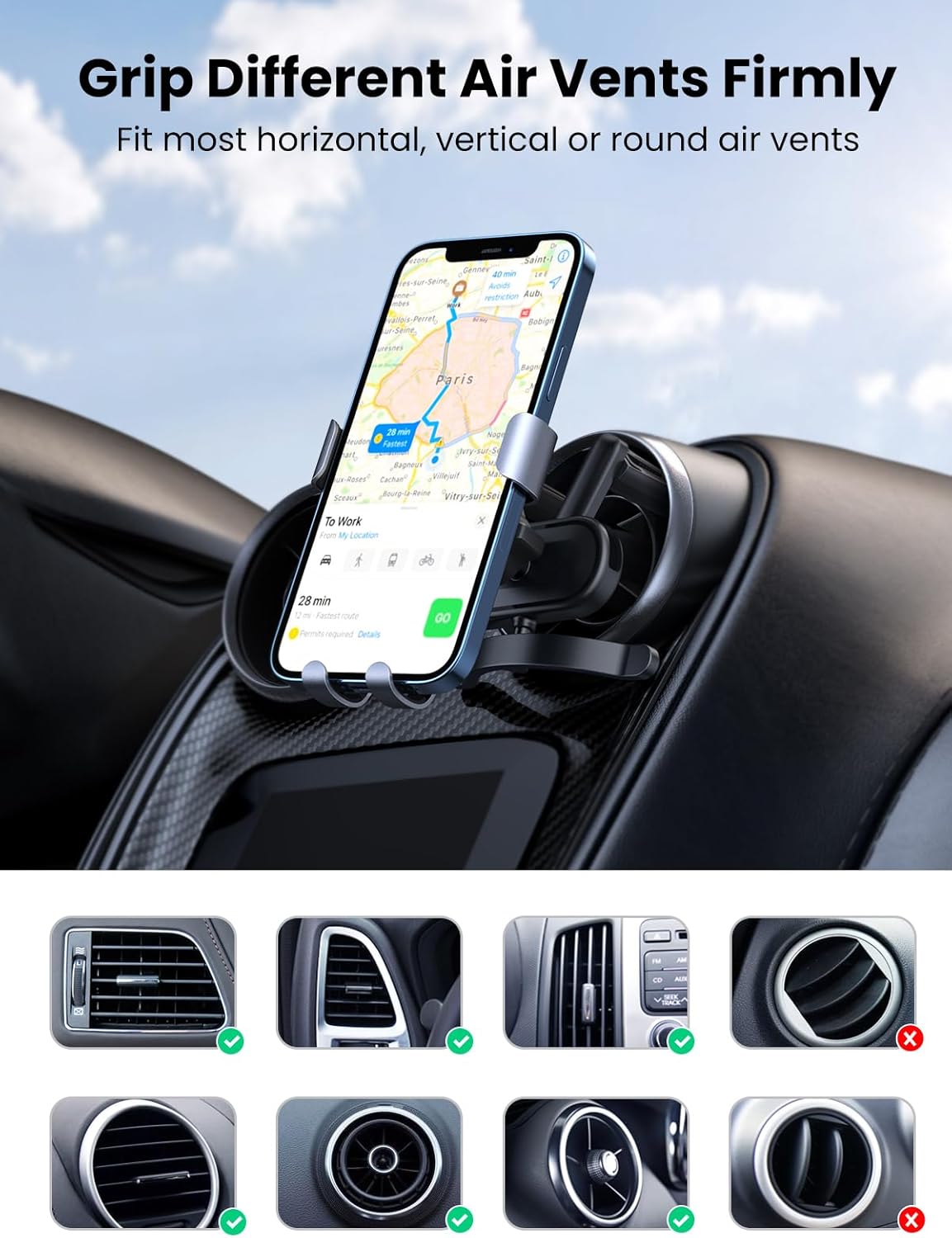 - Type: Gravity Phone Holder for Round Air Vent