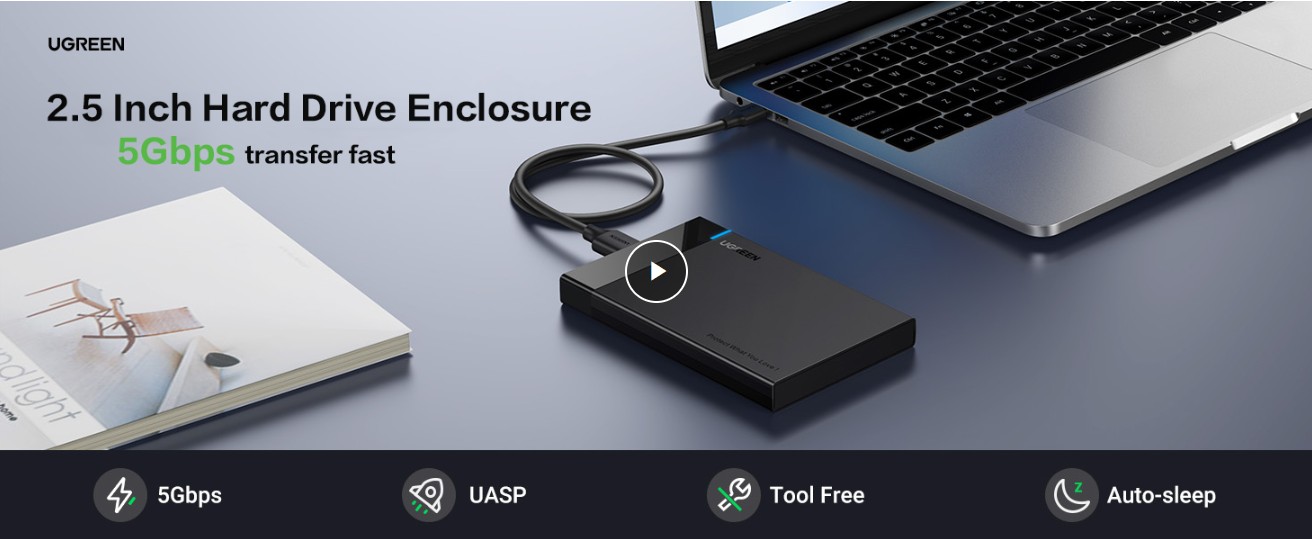 UGREEN 30847 2.5″ Hard Drive Enclosure USB 3.0 to SATA III Adapter
