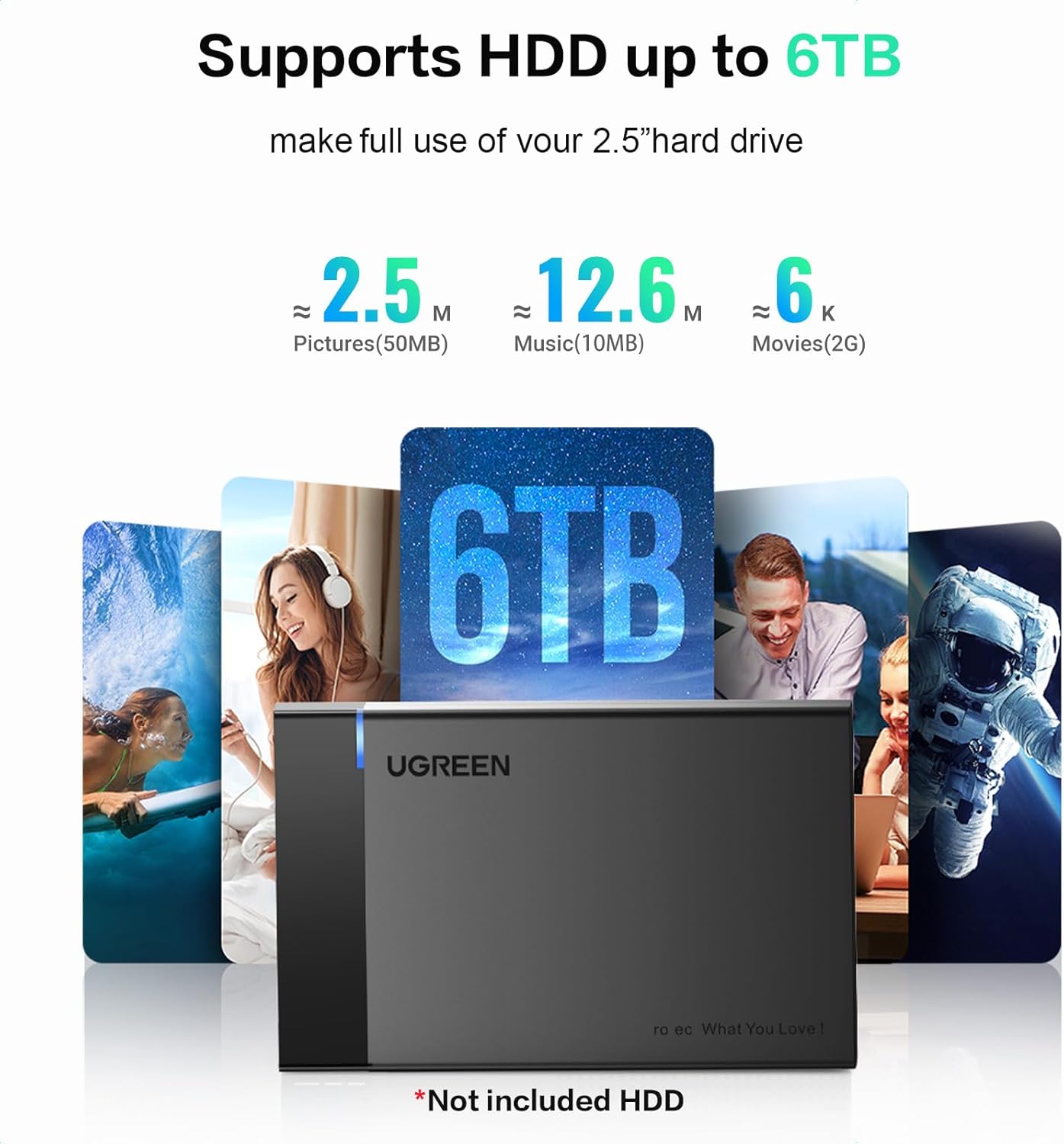 - Plug and Play & Universal Compatibility: Plug & Play.It supports Windows, LINUX, MacOS 8.0, and above. Designed for 2.5 inches 7mm /9.5mm SATA HDD & SSD up to 6TB. Compatible with WD, Seagate, Toshiba,Samsung, Crucial, SATA port SSD or HDD, and more