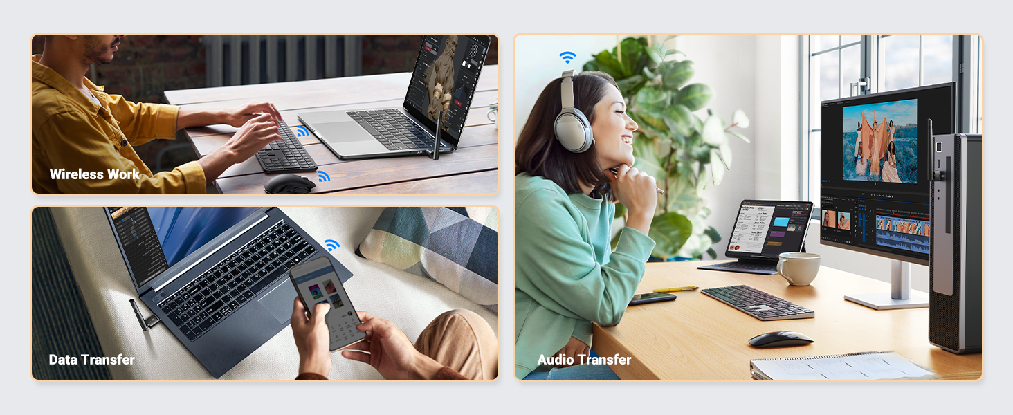 - Up to 5 Devices Sync Connected: You can fully use the USB Bluetooth Adapter to connect multiple devices simultaneously, Can work with 5 devices at the same time, such as Bluetooth speakers, keyboards, headsets, and mice.