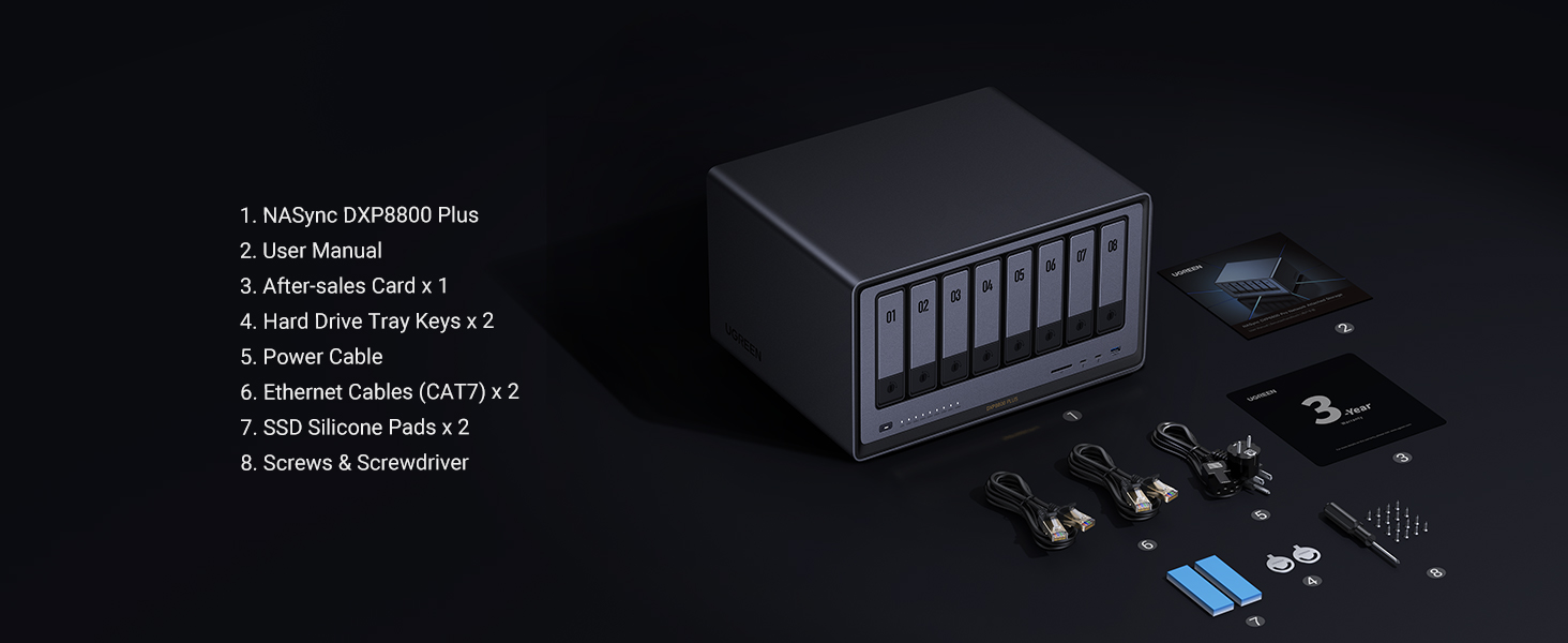 - 1 x UGREEN NASync DXP8800 Plus Unit (Diskless)