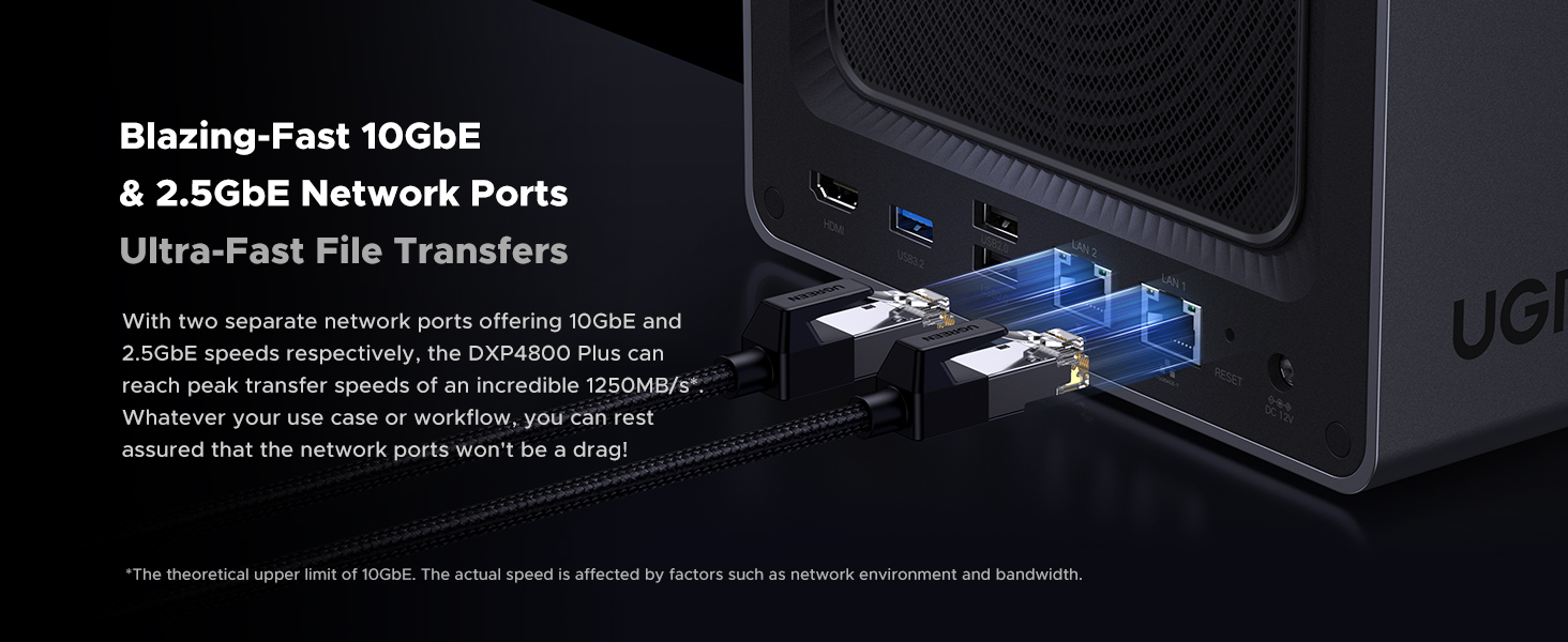 For those who demand uncompromising performance, the UGREEN NASync DXP4800 Plus redefines what a desktop NAS can achieve. This is a professional-grade storage solution designed for prosumers, creative studios, and small to medium businesses that require immense speed, robust processing power, and unwavering reliability.