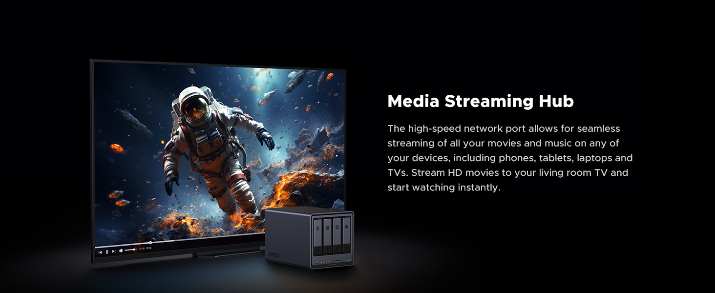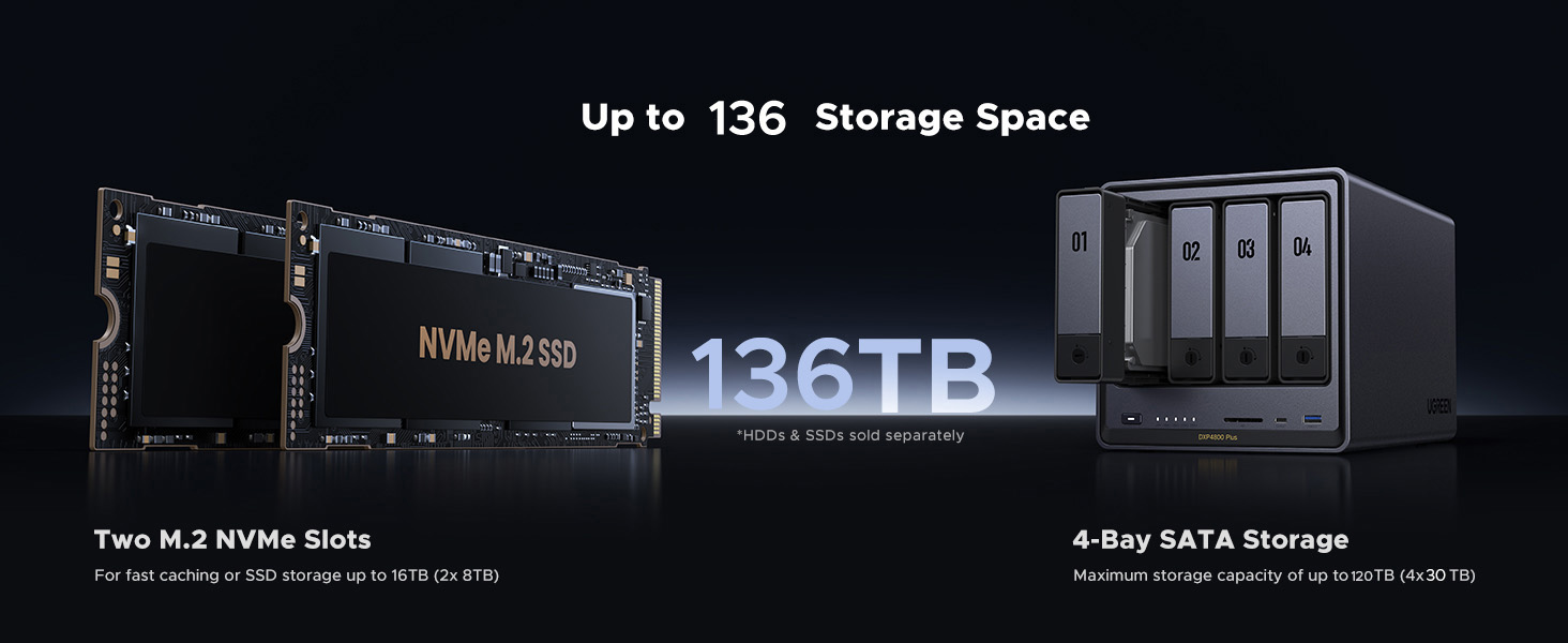 With expandable DDR5 memory (up to 64GB) and dual M.2 NVMe slots, you can build a system that rivals a dedicated server. Use the SSDs for a hyper-responsive cache or create a dedicated storage volume for your most active projects. This NAS is the cornerstone of a professional video editing workstation, a reliable business file server, and a powerful virtualization host. For the ultimate performance, combine it with UGREEN SFP+ DAC cables or 10GbE adapters, NAS-optimized hard drives, and high-endurance NVMe SSDs.