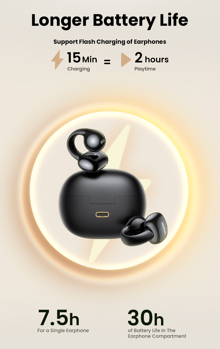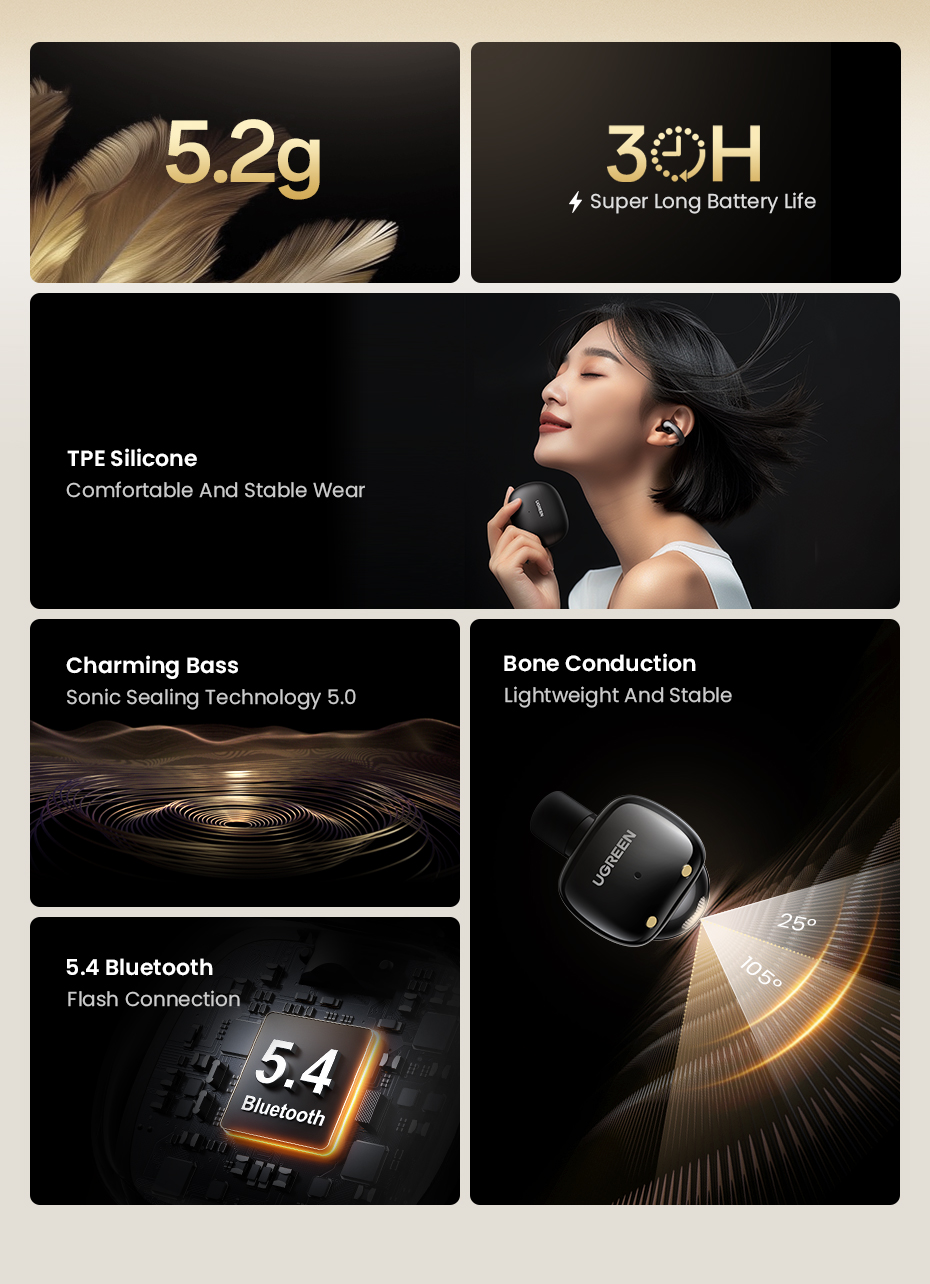 UGREEN 35296 HiTune S3 Wireless Bluetooth 5.4 Earphones Open Ear Noise Reduction (IPX5 Waterproof)