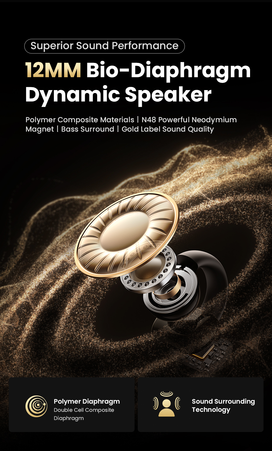 - PREMIUM SOUND QUALITY: 12MM Bio-Diaphragm Dynamic Speaker with polymer composite materials and N48 neodymium magnet delivers rich bass and crystal-clear sound.