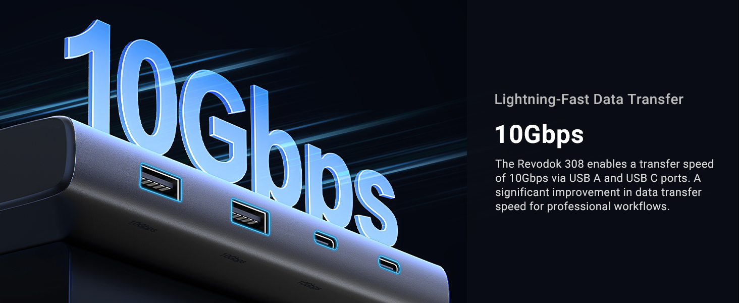- High-Speed Data Transfer: Boasting a USB 3.2 port with a lightning-fast data transfer rate of 10Gbps, this expansion dock allows for quick and efficient transfers of files, movies, and photos. Note:the 10Gbps USB-C interface is designed for data transmission only and does not support video output or charging