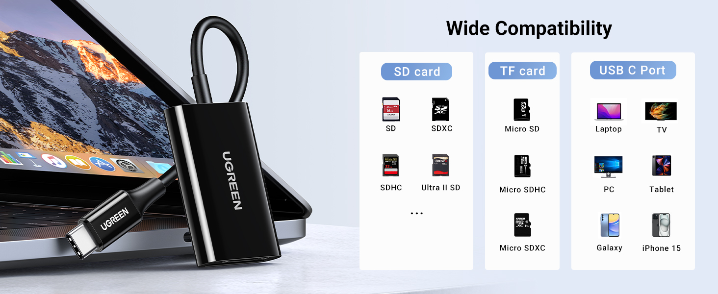 The UGREEN 35622 USB-C SD Card Reader is a professional-grade adapter for photographers and videographers using iPhone 15 Pro Max, DSLRs, or drones. With 170MB/s speeds and dual-slot functionality, it’s the fastest way to transfer high-res media to your phone, tablet, or laptop.