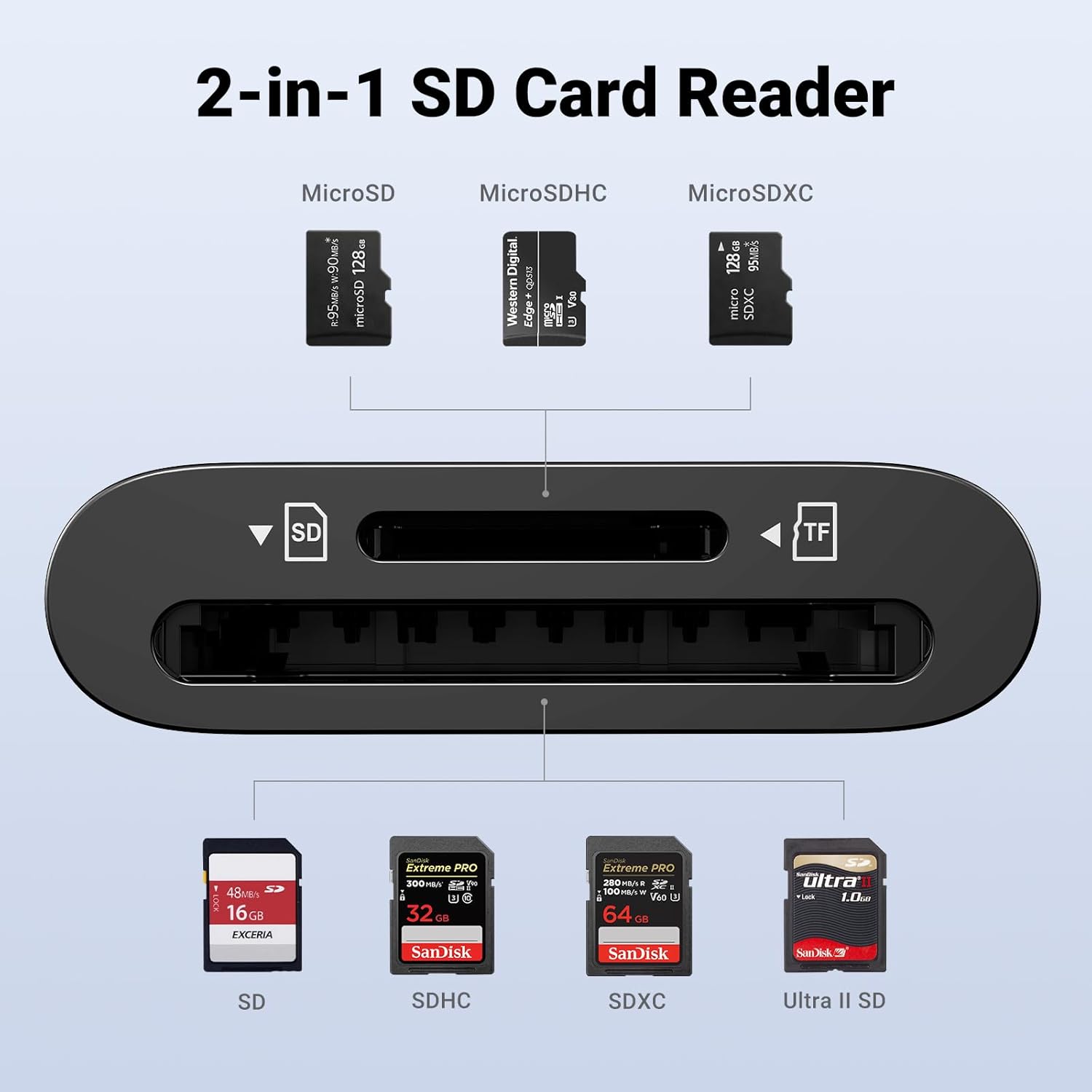 - SD/SDHC/SDXC (up to 2TB)