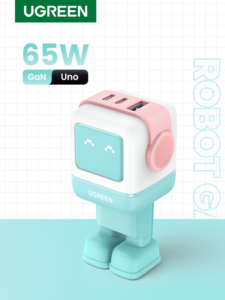 - UGREEN Uno, for power and fun: the first robot charger from UGREEN has come to us! With small robot-shaped design and 65W MAX charging power, this cute USB C charger fits perfectly into your desktop. The futuristic UGREEN Uno Charger 65W, an eye-catcher, combines functionality and fun, which is perfect as a gift for family and friends.