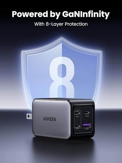 The UGREEN Nexode 65W GaN Charger redefines fast charging with GaN Infinity technology, delivering 3× faster heat dissipation and 40% higher power density than traditional silicon chargers. Whether you’re a digital nomad, gamer, or busy professional, this 4-port powerhouse keeps all your devices juiced up without clutter.