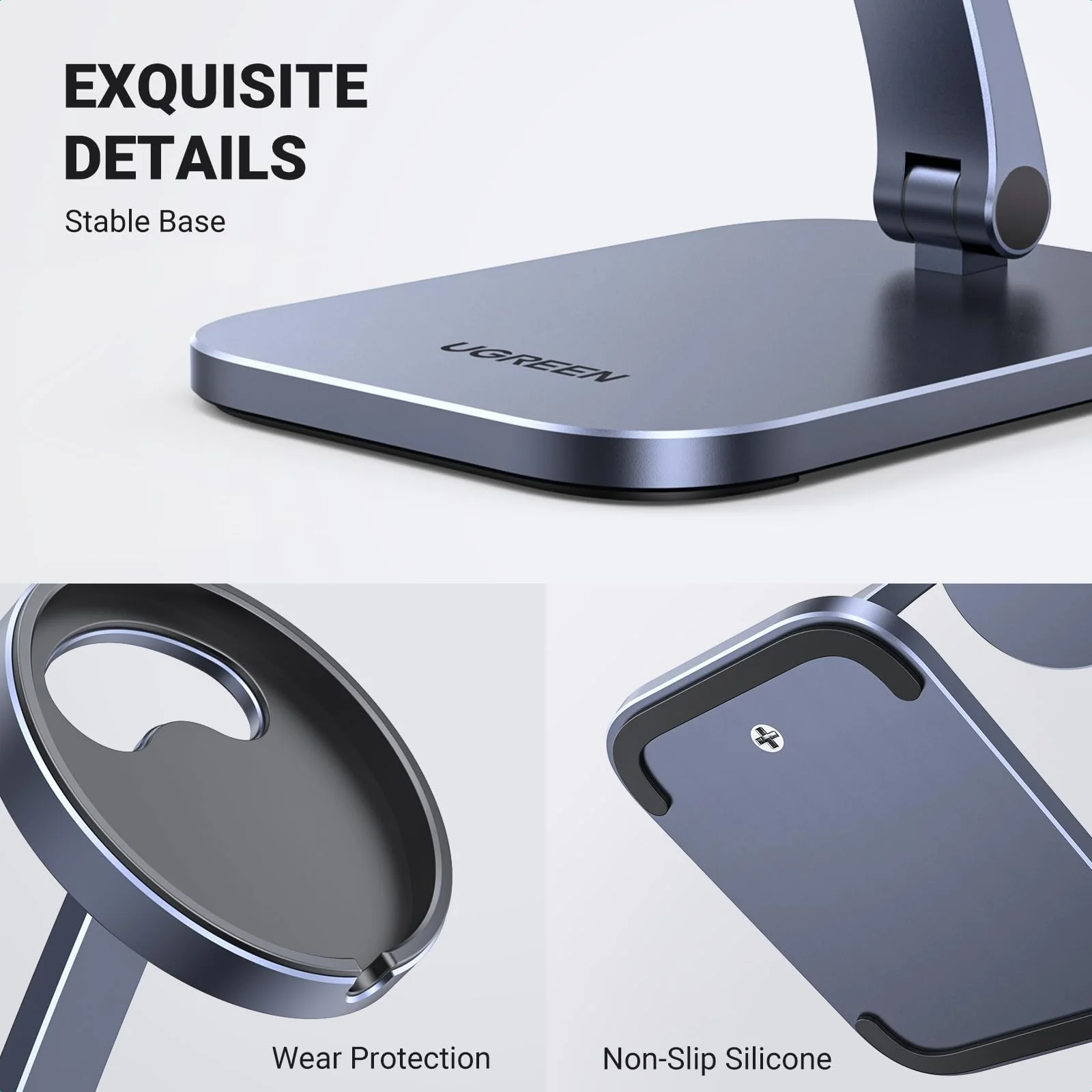 Though small and sleek, UGREEN MagSafe Charger Stand adopts robust aluminum alloy construction to offer enough weight to hold iPhone stably. Rubber pads prevent slipping and improve stability, providing a safe cradle for your expensive iPhone. Plus, aluminum can resist oxidation, knocks, and drops, greatly improving the durability of the iPhone MagSafe Stand and delivering longer service life.