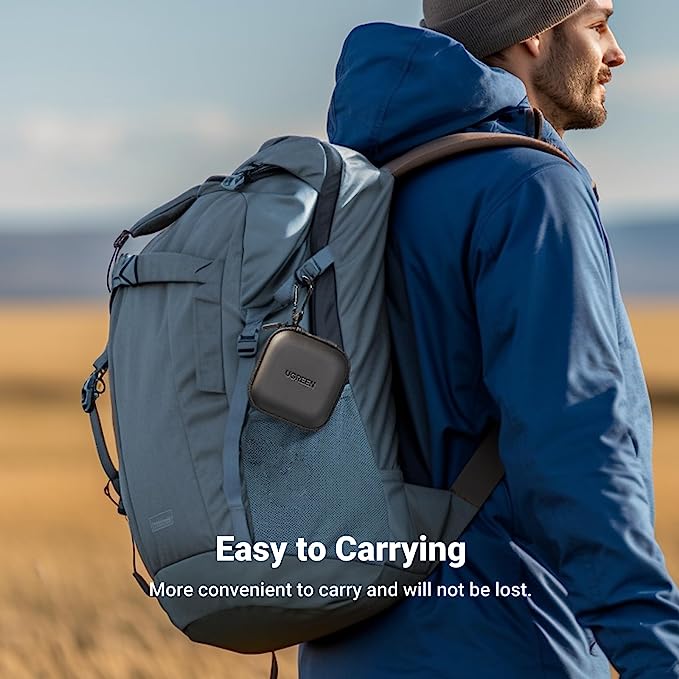 Measuring 3.15 x 3.15 x 1.57 inches, this pocket-sized case is incredibly portable and lightweight. Its small form allows it to be conveniently stowed in your pocket for travel. Additionally, the inclusion of a carabiner enables easy attachment to your backpack or bag, providing a convenient, hands-free carrying option.