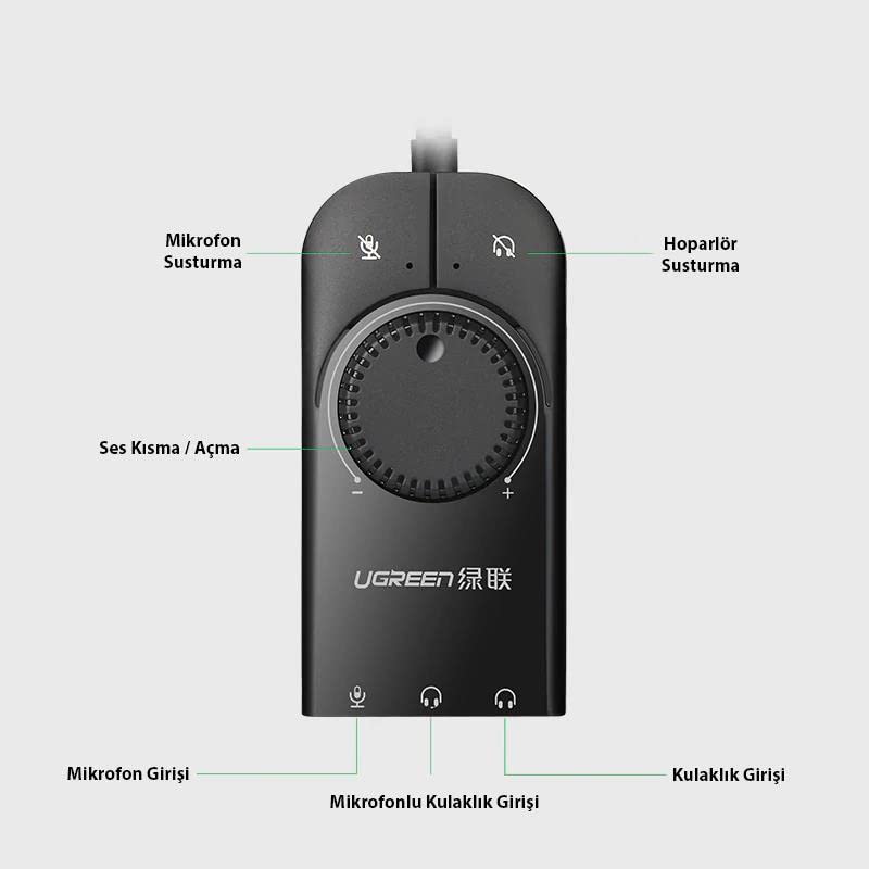 UGREEN 40964 USB Audio Adapter External Stereo Sound Card, 3.5mm Headphone & Mic with Volume Control, Dual Headset Support, Noise-Reduction Chip, Compatible with Windows, Mac OS, Linux