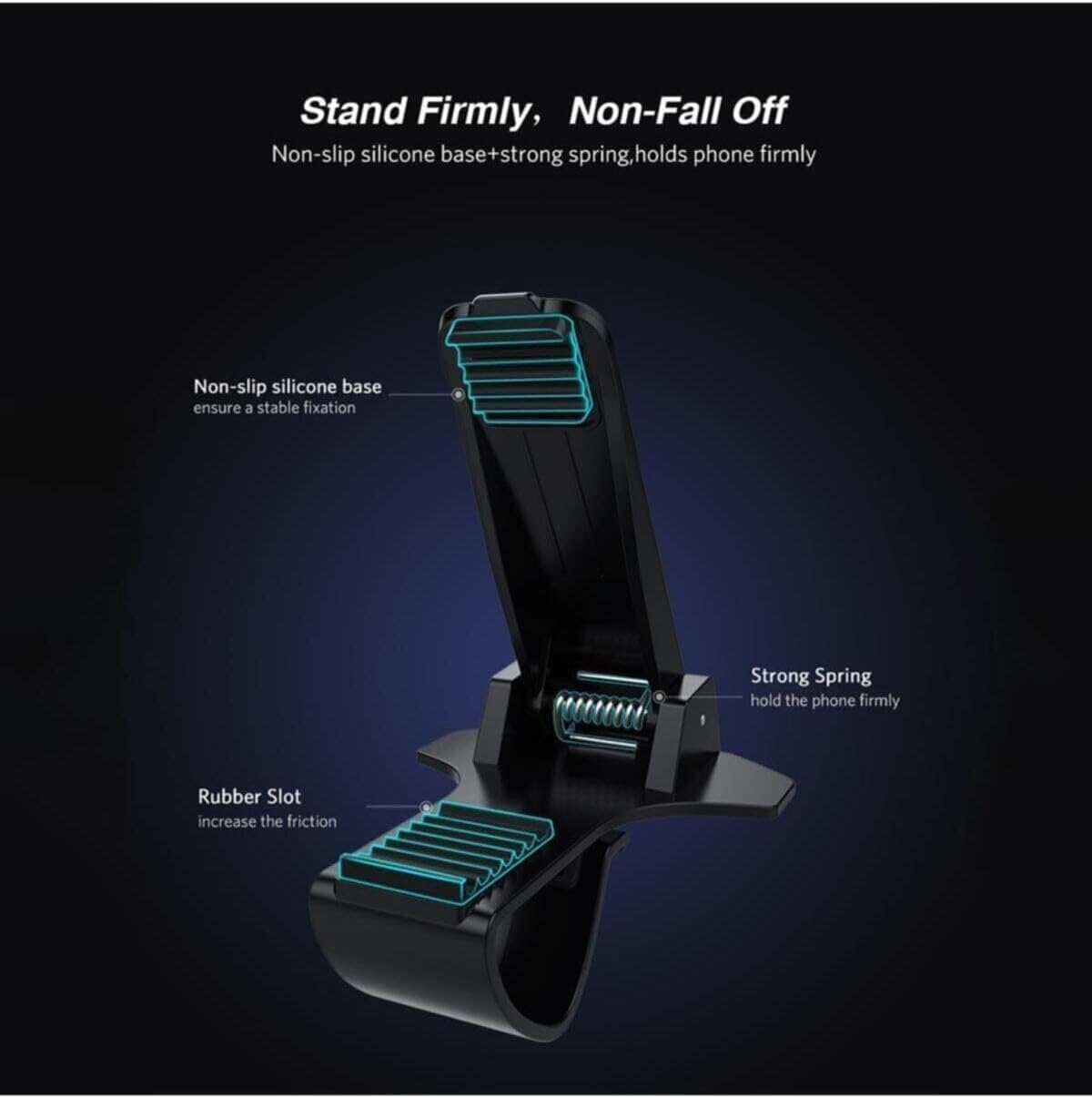 With double curved rubber slots structure and strong spring , this car mount dash phone stand can hold your phone more firmly. Anti-slip rubber pads effectively prevent the issue of getting loose while driving, steadily holding your phone without sliding. The rubber padding also protects your phone from scratches and absorbs road vibrations, keeping your device stable even on bumpy roads.